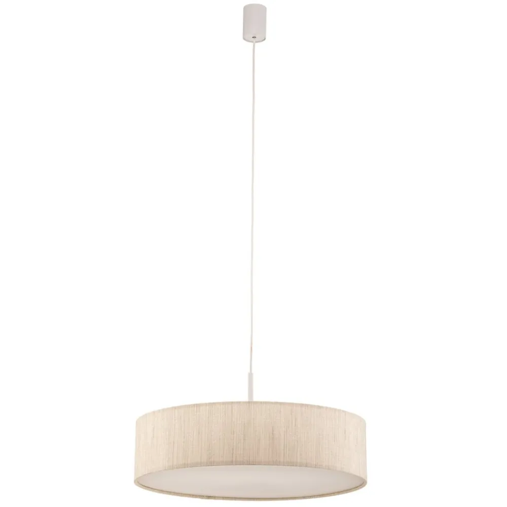 Hængelampen Turda imponerer med sit moderne design, der passer perfekt ind i forskellige rum som stuen, køkkenet og spisestuen. Den er fremstillet af en harmonisk kombination af tekstil, papir, PVC og stål og giver ethvert rum en stilfuld og moderne atmosfære. Den hvide farve giver et lyst og venligt udtryk, der har en positiv indflydelse på stemningen.