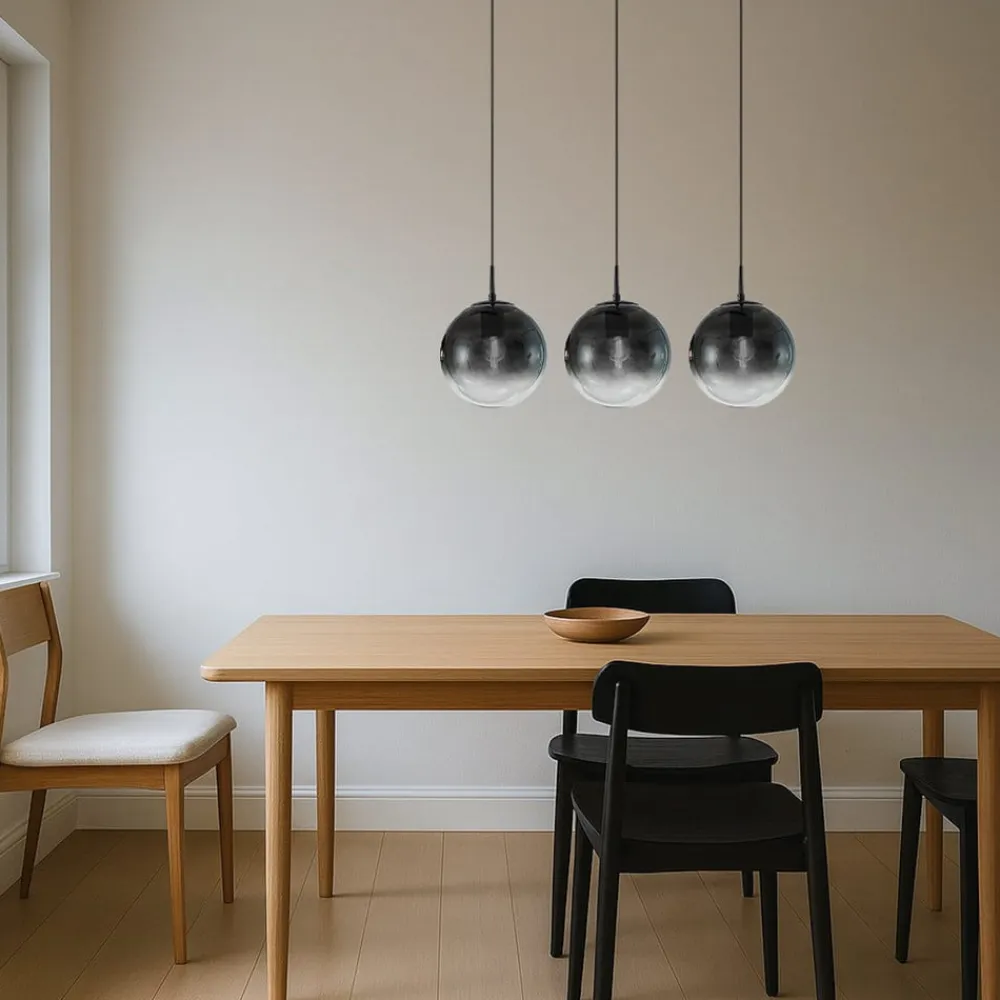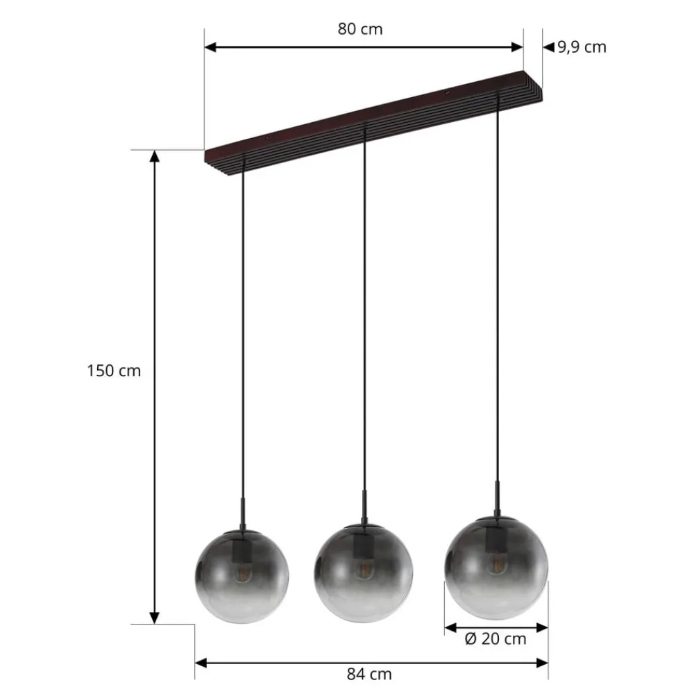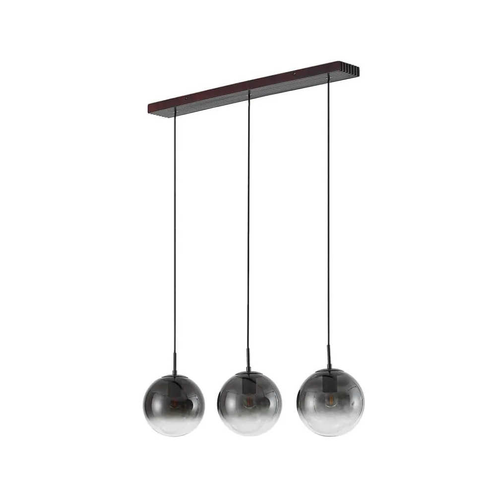 Veloura hængelampe kombinerer stilfuldt design med varmen fra egetræ og elegancen fra røggråt glas. Denne kombination af materialer af høj kvalitet skaber en harmonisk atmosfære, der gør indtryk både i stuen og i spisestuen. Den 3-lyskilde-konstruktion sikrer en jævn belysning og sætter stilfulde accenter i ethvert rum.