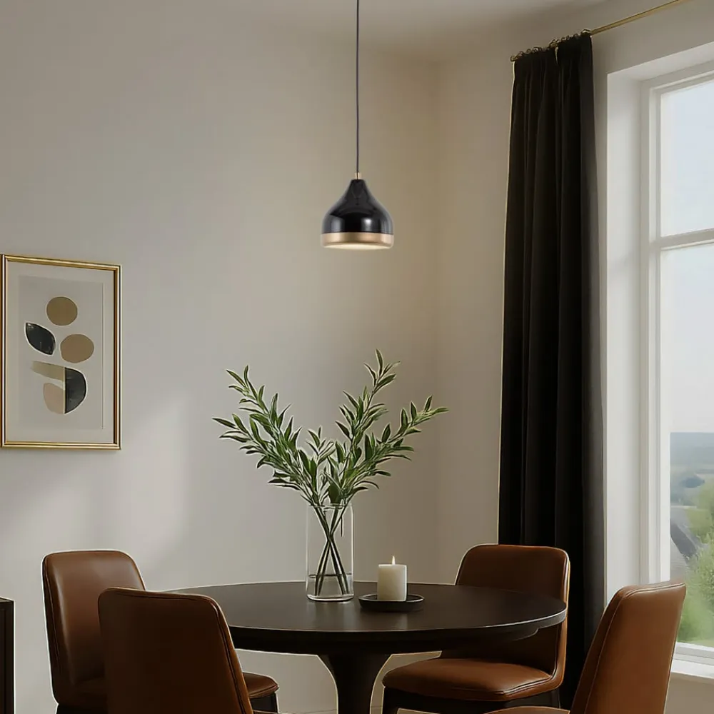 Hængelampen Yildo imponerer med sit moderne design og den harmoniske kombination af sort og guldfarvet metal. Denne lampe passer perfekt ind i forskellige boligområder som stuen, spisestuen og køkkenet, hvor den sætter stilfulde accenter. Den høje kvalitet og det tidløse design gør den til et blikfang i ethvert rum.