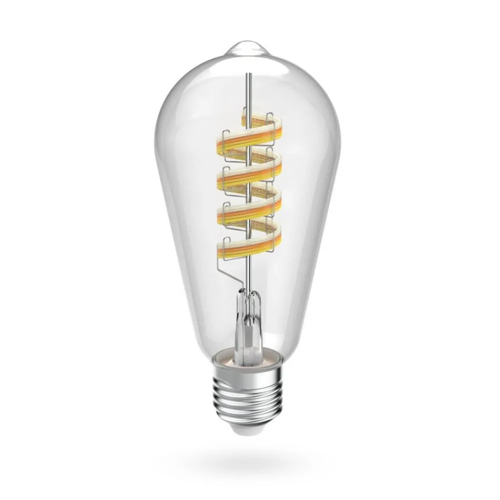 Smart 4,9 W E27 LED rustik lampe – RGBW-farveskift, Wi-Fi og Matter-kompatibel, kan styres via app og med stemmekommandoer Der kræves ingen bro til integration og smart styring af denne LED-lyskilde fra Hama. ST64-lampen med glødetrådslook og klar glaspære kan styres direkte via en Wi-Fi-forbindelse ved hjælp af den gratis Hama Smart Home-app. Den kan også styres med stemmekommandoer (Google Assistant, Amazon Alexa eller Apple Siri) og integreres i enhver Matter-kompatibel app, så smart home-lyset kan tændes og slukkes og dæmpes kontinuerligt. Lysfarven kan justeres efter behov fra varm hvid til dagslys og i op til 16 millioner farvenuancer. Tidsstyret og automatiseret skift er muligt takket være timere, der kan indstilles via appen, og flere smart home-produkter kan også styres sammen eller kombineres i grupper.