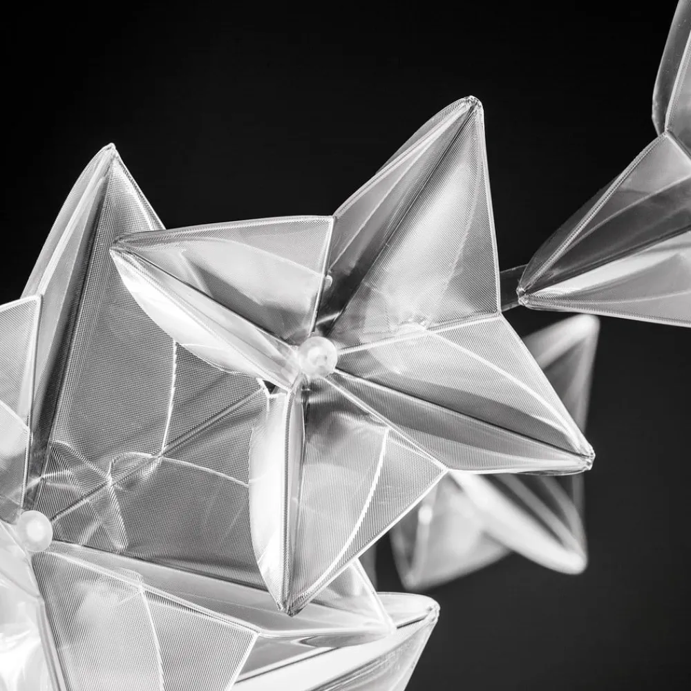 Uanset om den hænger i loftet eller på væggen, ser den elegante designerlampe Hanami godt ud overalt og kan bruges både som loftlampe og væglampe. Designet af Adriano Rachele imponerer med sine håndplisserede blomster af Lentiflex® og fortryller med unikke lyseffekter. Det af Slamp udviklede og patenterede technopolymer Lentiflex® skifter farve afhængigt af betragterens synsvinkel. På denne måde skaber den prismeagtige overflade de mest skinnende nuancer. Det elegante design gør det muligt at bruge lampen både i private hjem og i offentlige og gastronomiske områder som stilfuld belysning i restauranter, hoteller, gallerier og museer. Samtidig fungerer den som et dekorativt indretningselement, der med sin luksuriøse flair tilfører ethvert rum en nuance af elegance.