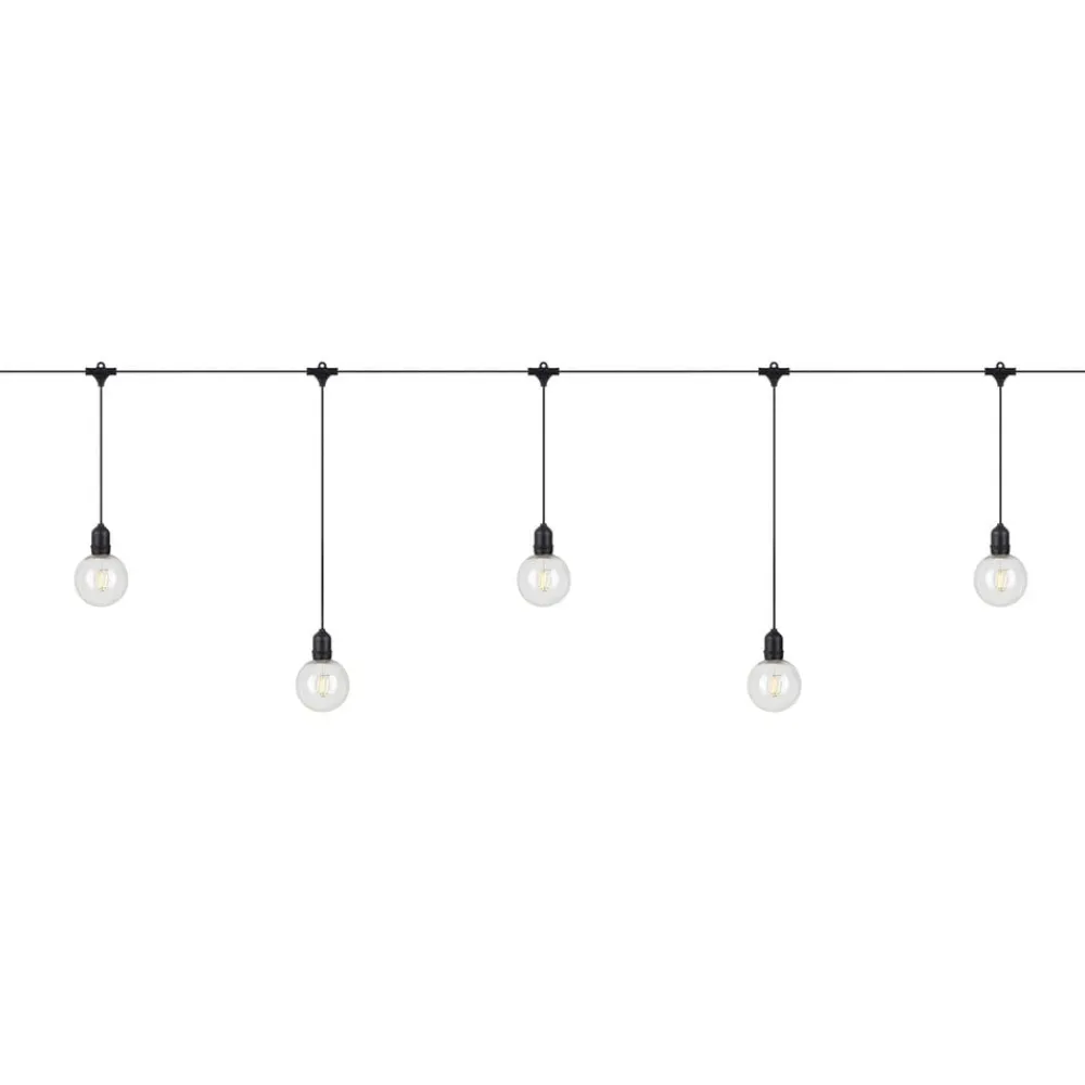 Startsæt – 10 lyskilder Deco LED-lyskæder fra Garden 24V-systemet Deco LED-lyskæderne leveres i et praktisk startsæt, som indeholder en 12 watt transformer, så lyskæderne kan tages i brug med det samme. Den er lavet af plast og er takket være sin IP44-klassificering designet til udendørs brug, hvor den nemt kan hænges op på facader, rækværk, skærme og andre strukturer for at skabe en stemningsfuld atmosfære på terrassen. Den har i alt ti lyskilder, som er designet som traditionelle glødepærer. Deco er ideel til festbelysning og kan nemt tilsluttes andre komponenter i Garden 24V-systemet – inkl. 12 watt transformer