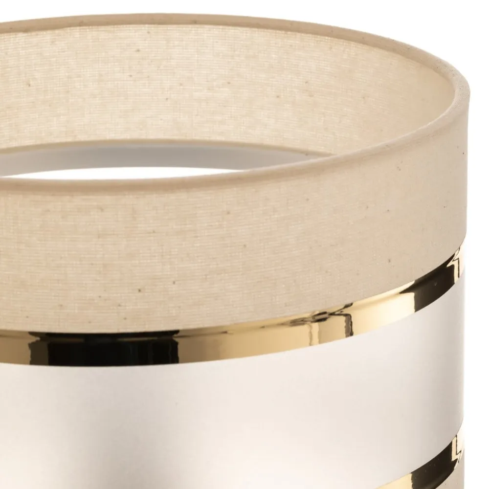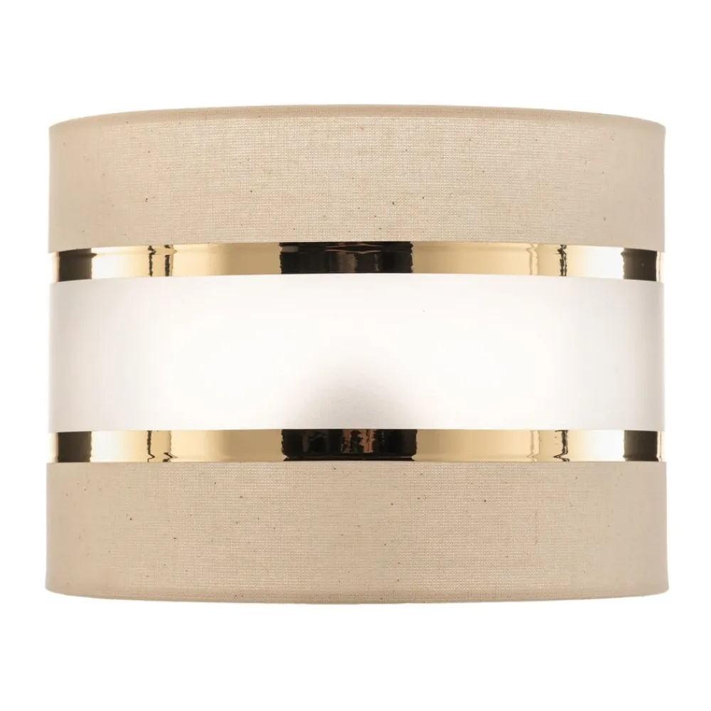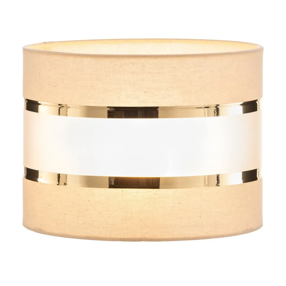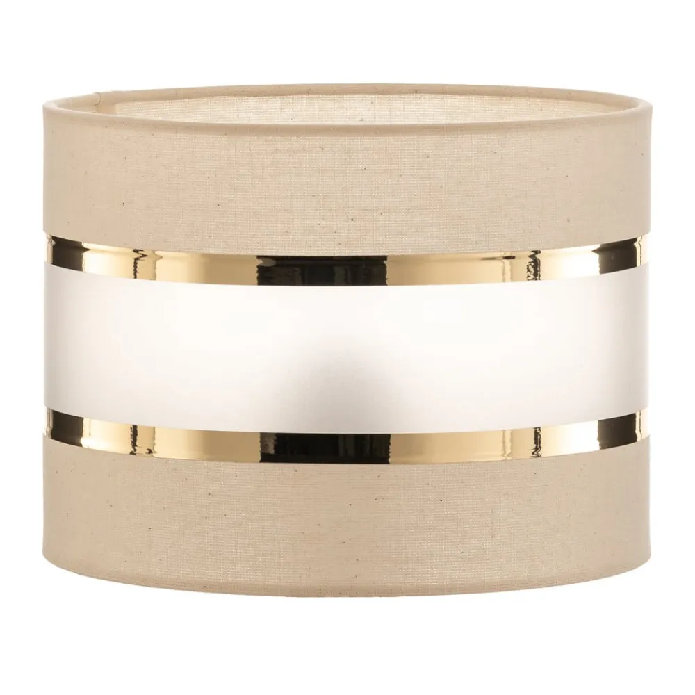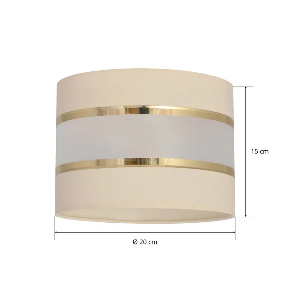Lampeskærmen Helen E27 kombinerer ædle materialer som tekstil, polypropylen og jern for at skabe en harmonisk og stilfuld belysningsløsning. Farverne i ecru, guld og opal giver ethvert rum en varm og indbydende atmosfære. Uanset om det er i stuen, soveværelset, køkkenet eller spisestuen, passer denne lampeskærm perfekt ind i forskellige indretningsstilarter og sætter elegante accenter.