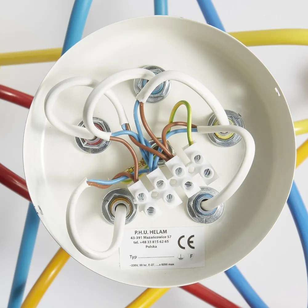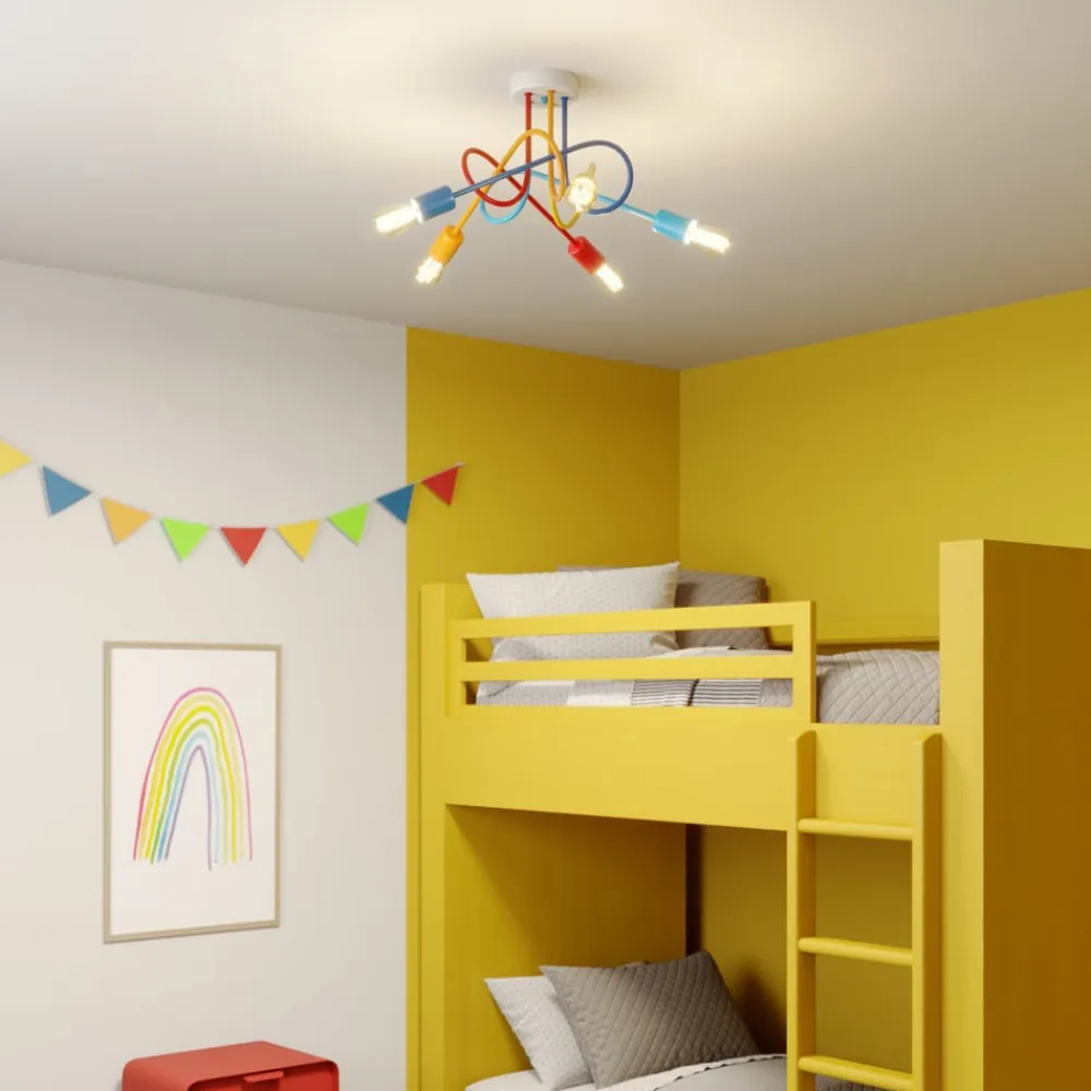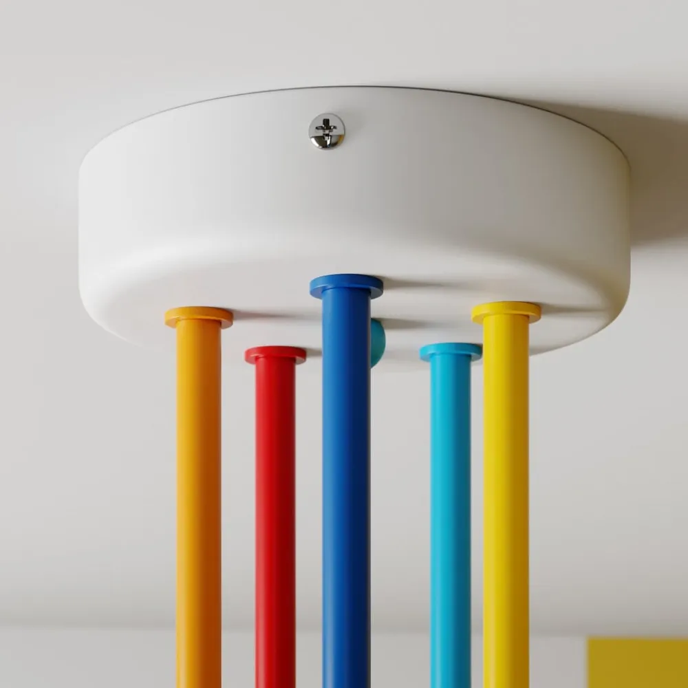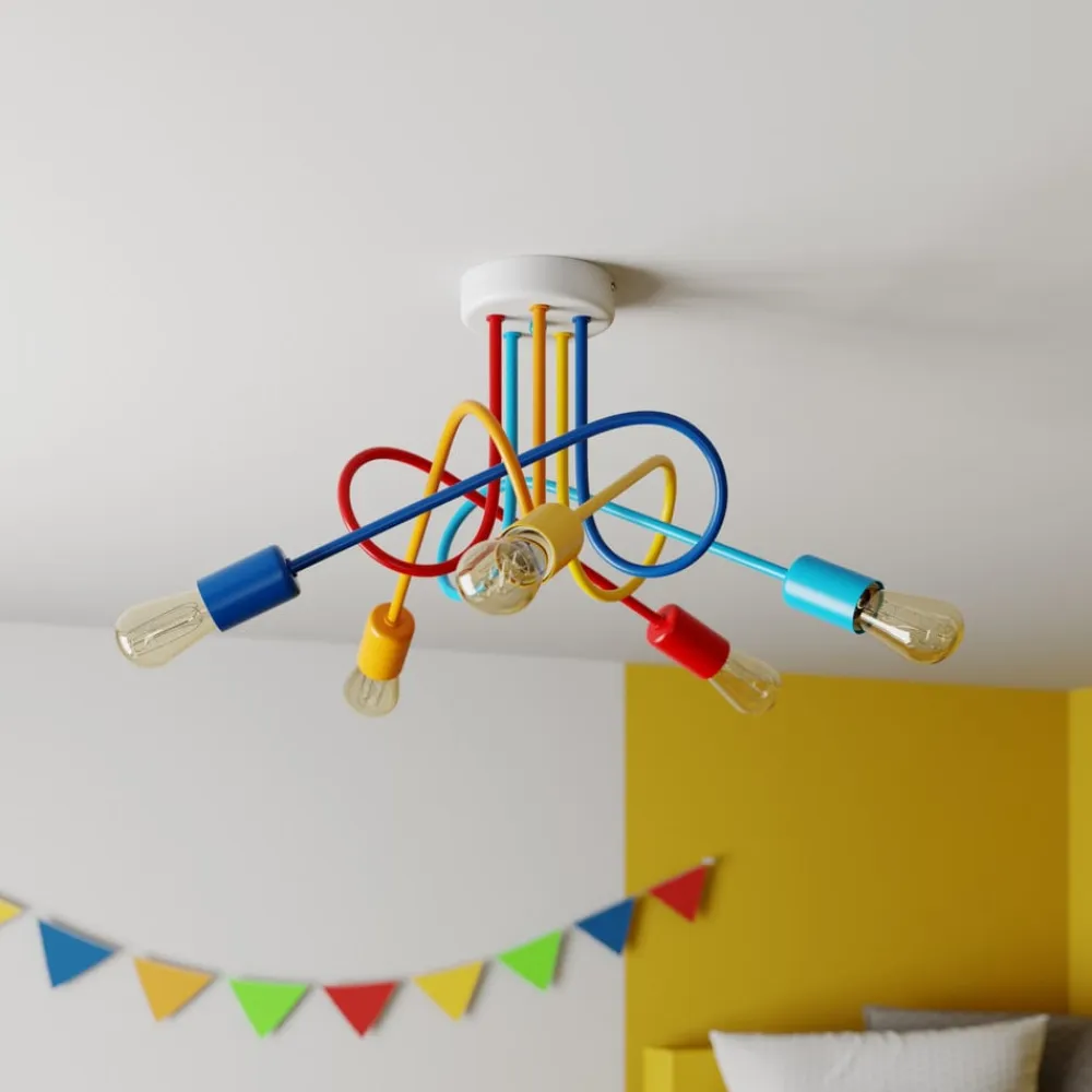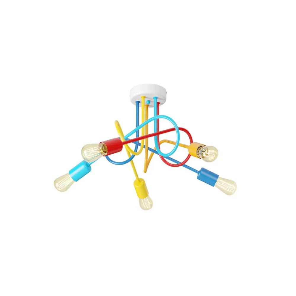 Loftlampen Oxford med 5 lyskilder i farver kombinerer legesygt design med funktionel belysning og sætter farverige accenter i ethvert rum. Lampen er fremstillet af robust jern og passer perfekt ind i den unge boligstil og er et livligt supplement til stuen og spisestuen. De farverige nuancer skaber en dynamisk atmosfære, der både er inspirerende og indbydende.
