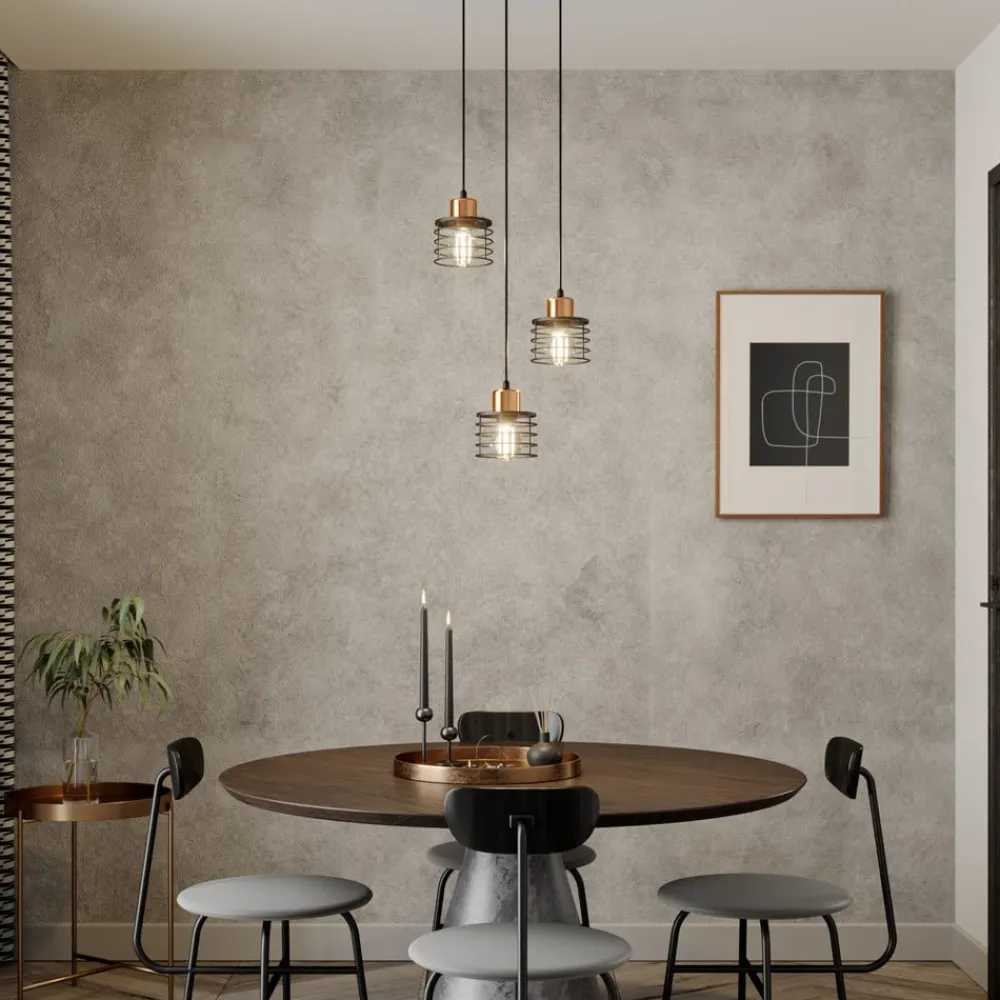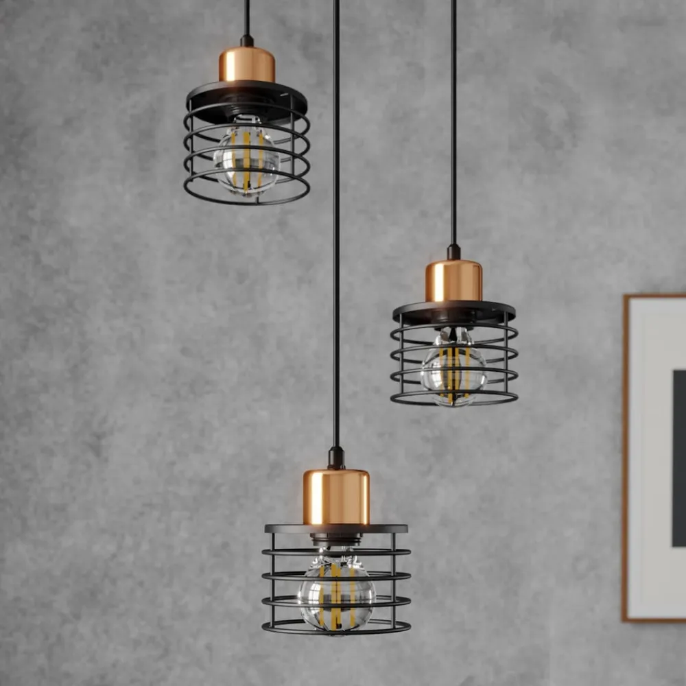 Hængelampen Edison i sort/kobber forener moderne design med funktionel alsidighed. Den er fremstillet af højkvalitetsjern og imponerer med sin stilfulde kombination af sort og kobberfarvet finish. Denne lampe passer perfekt ind i forskellige boligområder, hvad enten det er i stuen, køkkenet eller spisestuen. Den runde form med 3 lyskilder sikrer en jævn belysning og skaber en behagelig atmosfære.