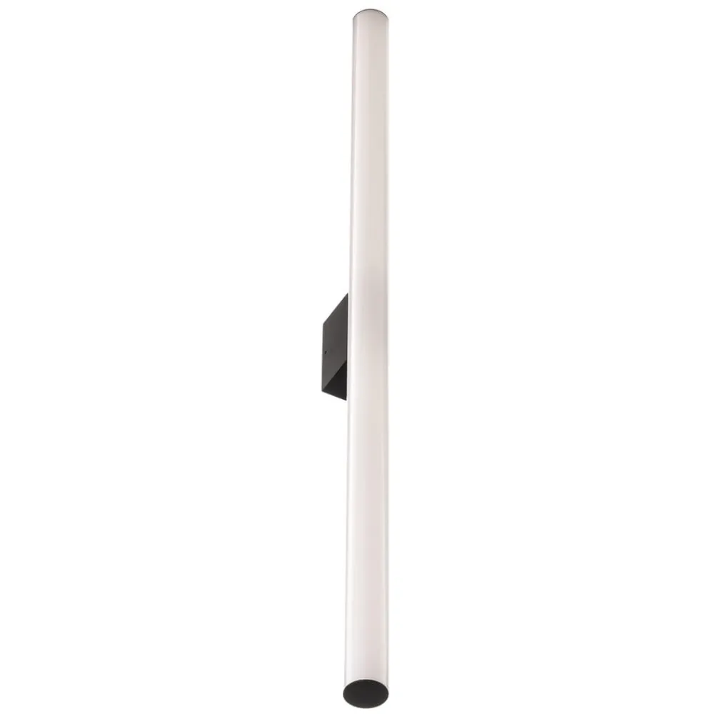 Loom LED-væglampe til ensartet spejlbelysning Vægbeslaget til Loom LED-spejllampen er lavet af mat sortlakeret metal og er centreret på bagsiden af den rørformede diffusor. Sidstnævnte er lavet af satineret akryl for at sikre en homogen og blændfri lyseffekt. Loom monteres lodret ved siden af spejlet eller vandret over det og skaber perfekte lysforhold. Bygget i overensstemmelse med beskyttelsesklasse IP44 er spejllampen også modstandsdygtig over for vandsprøjt. Med sit enkle design, der er reduceret til det væsentlige, er Loom det ideelle valg til garderoben eller badeværelset i det moderne interiør.