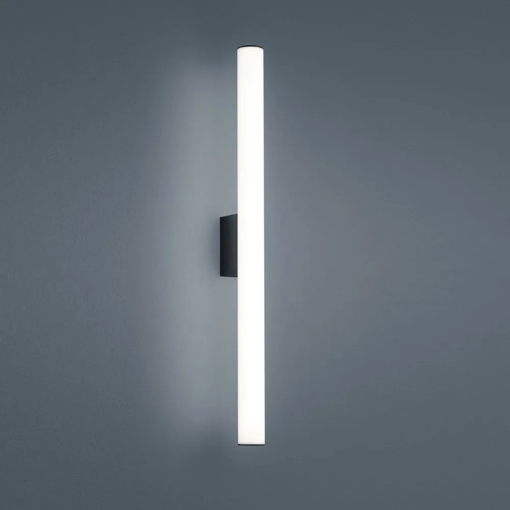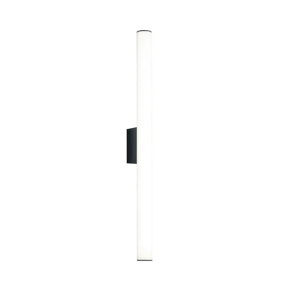 Loom LED-væglampe til ensartet spejlbelysning Vægbeslaget til Loom LED-spejllampen er lavet af mat sortlakeret metal og er centreret på bagsiden af den rørformede diffusor. Sidstnævnte er lavet af satineret akryl for at sikre en homogen og blændfri lyseffekt. Loom monteres lodret ved siden af spejlet eller vandret over det og skaber perfekte lysforhold. Bygget i overensstemmelse med beskyttelsesklasse IP44 er spejllampen også modstandsdygtig over for vandsprøjt. Med sit enkle design, der er reduceret til det væsentlige, er Loom det ideelle valg til garderoben eller badeværelset i det moderne interiør.