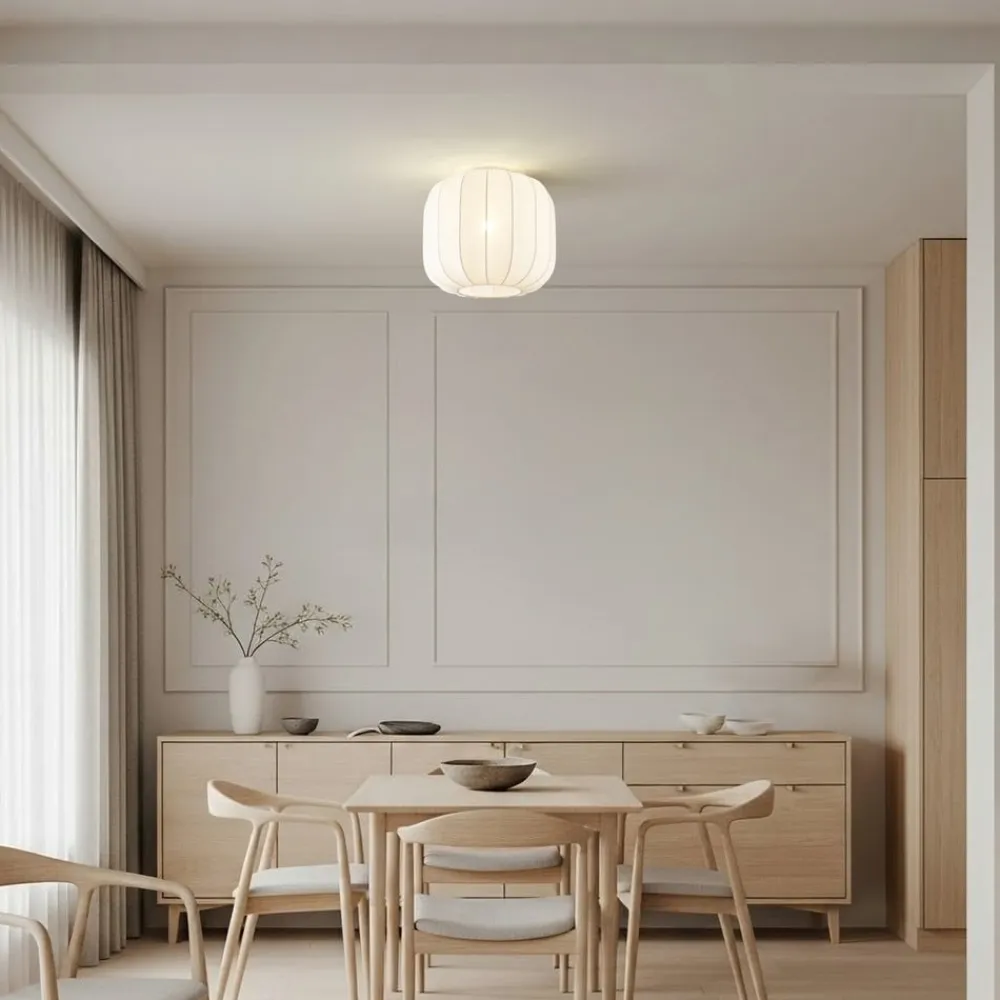 Lindby Helin loftlampe, hvid, stof, Ø 35 cm