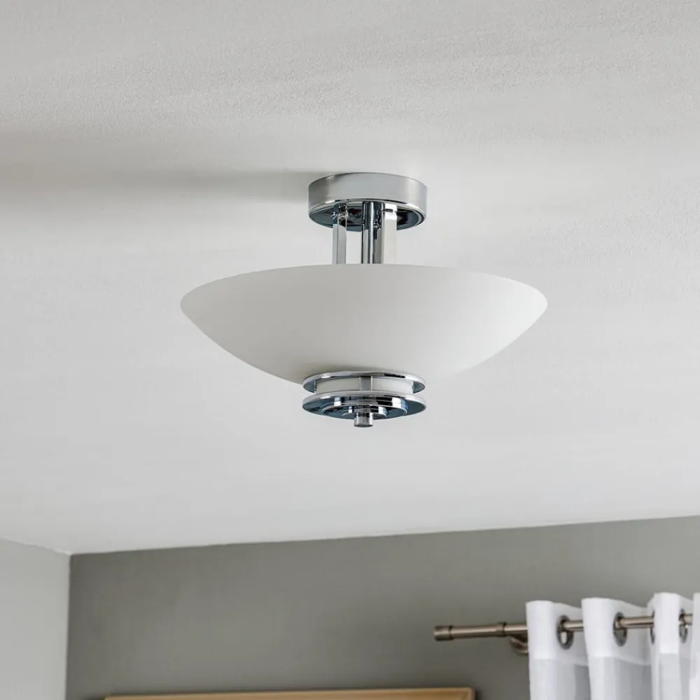Den økonomiske LED-loftlampe Hendrik blev opkaldt efter arkitekten Hendrik Berlage, som også er kendt uden for grænserne for sit hjemland Danmark. Faktisk ser selve loftlampe ud som et lille arkitektonisk mesterværk, der kan sætte dygtige accenter i badeværelset. Næppe nogen observatør vil være i stand til at undslippe lampens Art Decó-charme. Kromudseendet harmonerer perfekt med det frostede opalglas, så ejeren kan nyde det harmoniske og frem for alt stilfulde ydre af denne ekstremt energieffektive lampe. Da loftlampe leveres med kapslingsklasse IP44, er brug på badeværelset ikke et problem på trods af den forventede fugtighed.