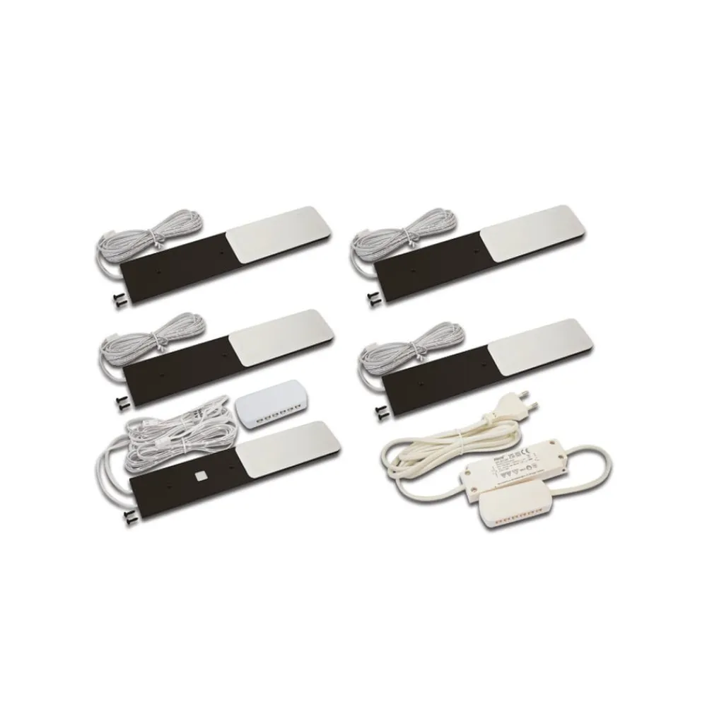 LED-underskabsbelysning S-Pad F sæt med 5 sorte 3.000 K dæmper