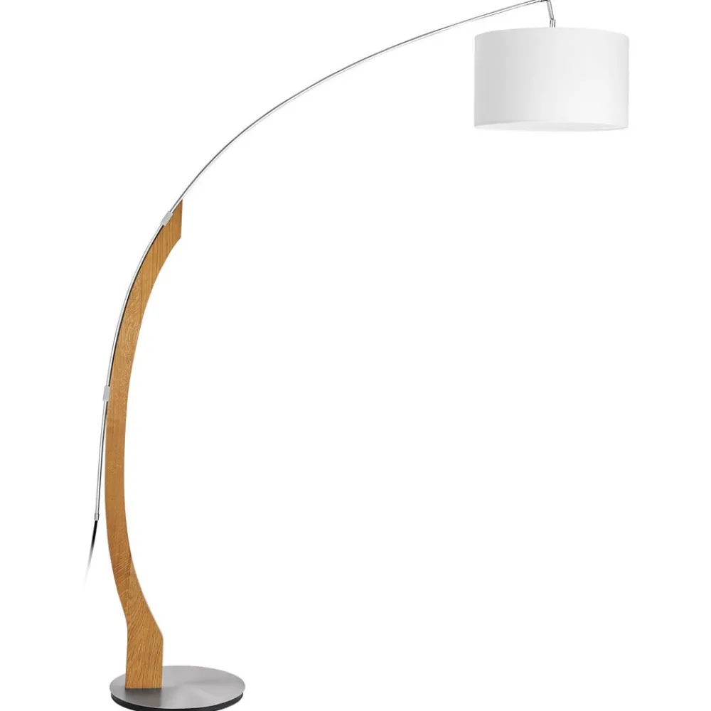 Højdejusterbar buelampe Amos lavet af træ og bomuld