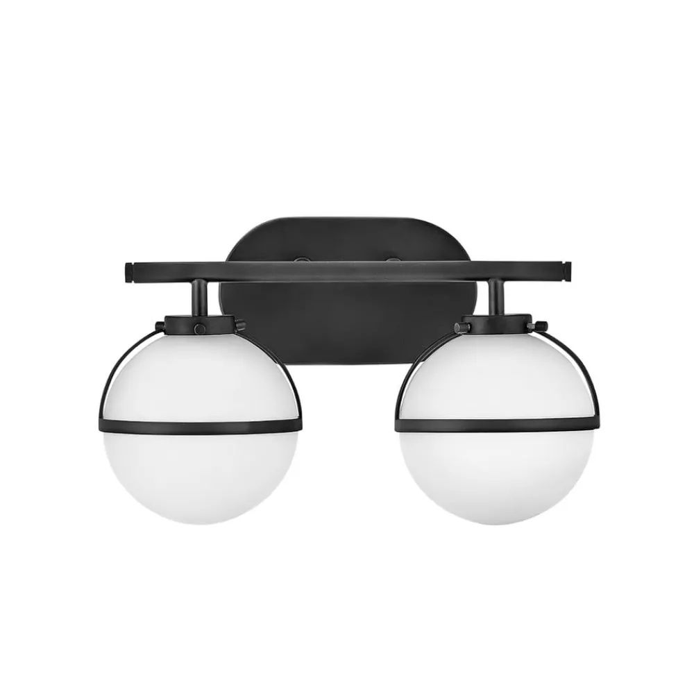 HINKLEY Hollis væglampe til badeværelset, sort/opal, 2 lk