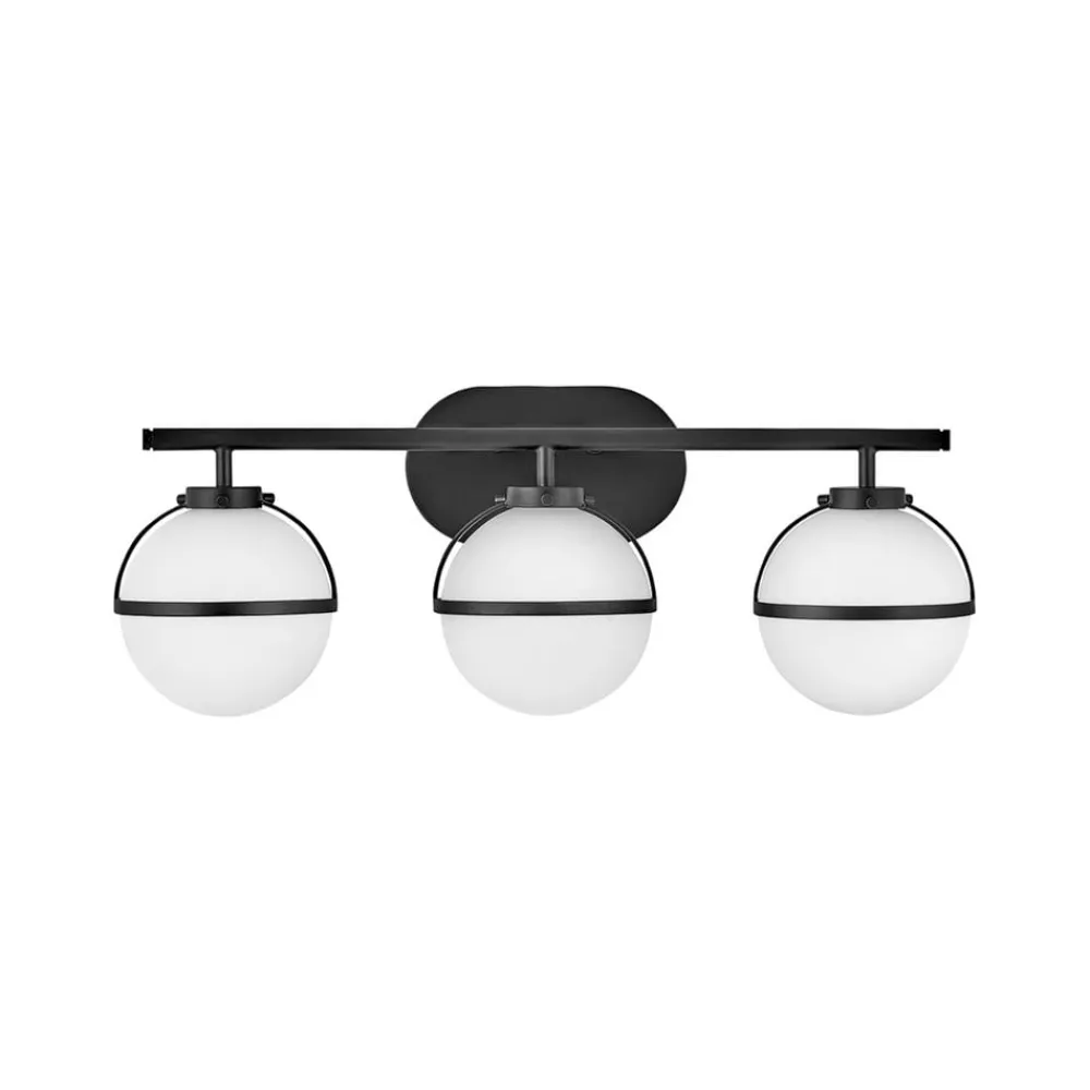 HINKLEY Hollis væglampe til badeværelset, sort/opal, 3 lk
