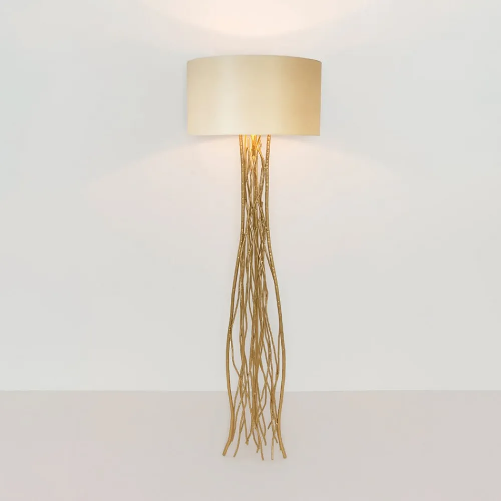 Capri gulvlampe, guld/ecru, højde 155 cm, hammerslået jern
