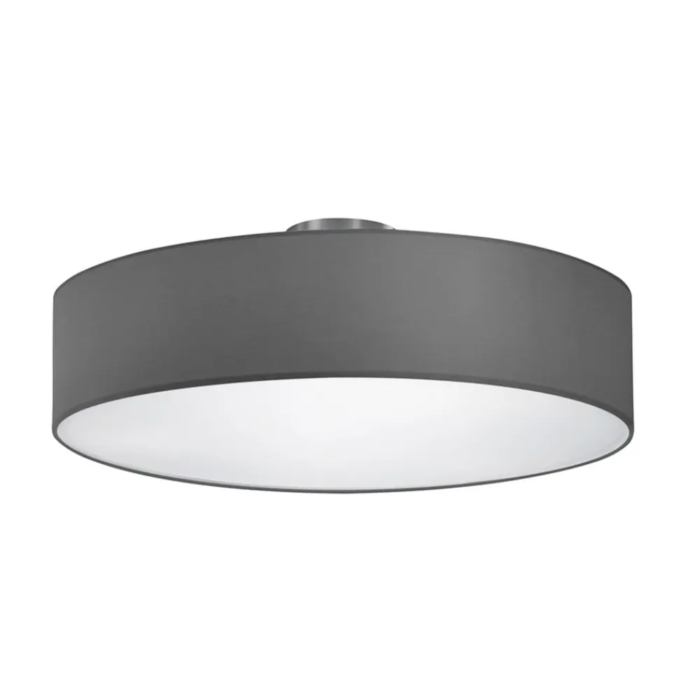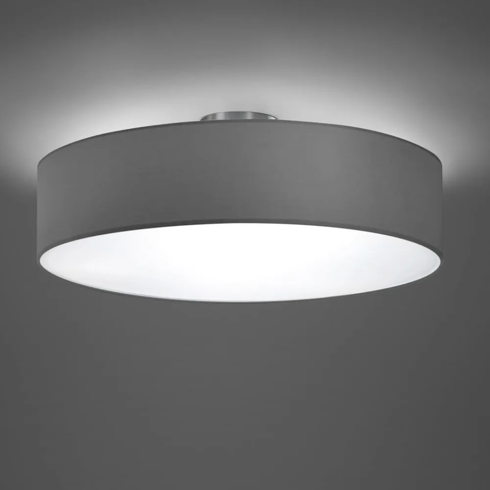 Elegant Hotel-loftslampe med stofskærm Takket være sit stilrene og diskrete design er Hotel-loftslampen velegnet til brug i private rum som soveværelser, stuer eller spiseområder, men den passer også godt ind i offentlige miljøer og kan f.eks. bruges som loftslampe i en restaurant eller på et hotel. Med sin grå farve kan Hotel kombineres med mange forskellige indretningsstile. Lyset reflekteres behageligt af den hvide inderside af skærmen og sendes ud mod gulvet.