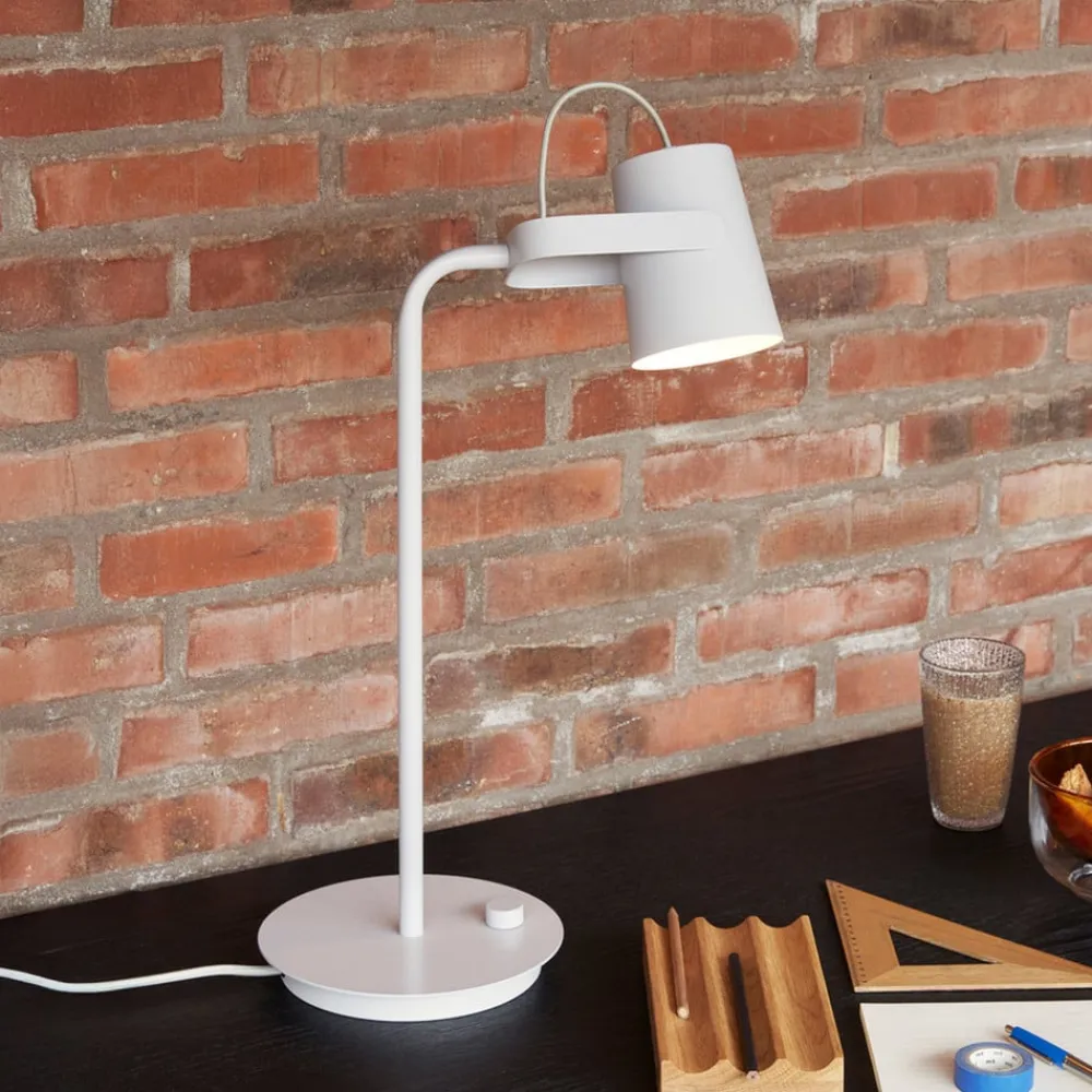 Ardent bordlampe – perfekt til skrivebordet Voilà – Ardent er en smuk, moderne skrivebordslampe. Den er designet i et så underspillet look, at den gør en god figur i enhver indretning. Enkel, men alligevel dristig, elegant og moderne – denne bordlampe er en vinder til kontoret, soveværelset eller børneværelset. Drejekontakten gør den nem at betjene.