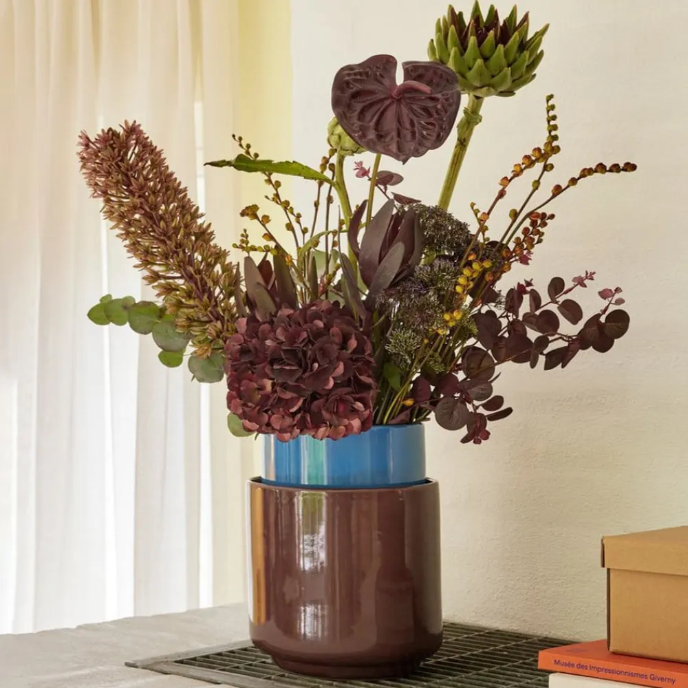 To alsidige krukker lavet af stenpulver Deux-krukkerne er alsidige og fås i to forskellige versioner, hver med en unik farve i rødbrun eller blå. Krukkerne er fremstillet af stenpulver af høj kvalitet og er ikke kun holdbare, men giver også et elegant præg til ethvert rum. Brug dem som to separate individuelle stykker eller sammen for at skabe en fantastisk blanding af farver. Uanset om de bruges som vaser, krukker eller til opbevaring, vil disse farvestrålende krukker med garanti være et iøjnefaldende element i din bolig.