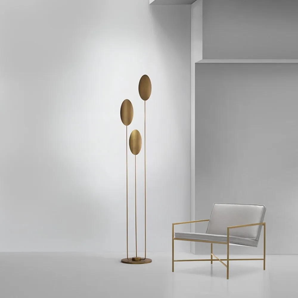 Dæmpbar Masai LED-gulvlampe med tre ovale bladeMasai LED-gulvlampe i en varm børstet bronzefinish er ideel til indirekte belysning. Armaturserien, som er designet af Marco Pagnoncelli for den italienske producent ICONE, er kendetegnet ved en oval form. Det viser sig i gulvlampen i tre aluminiumselementer, som er udstyret med varmt hvide LED’er på den ene side og understøttes af arme i forskellige længder. Foden er en rund sokkel – god farvegengivelse: CRI 90 – udstyret med en lysdæmper på tilslutningskablet