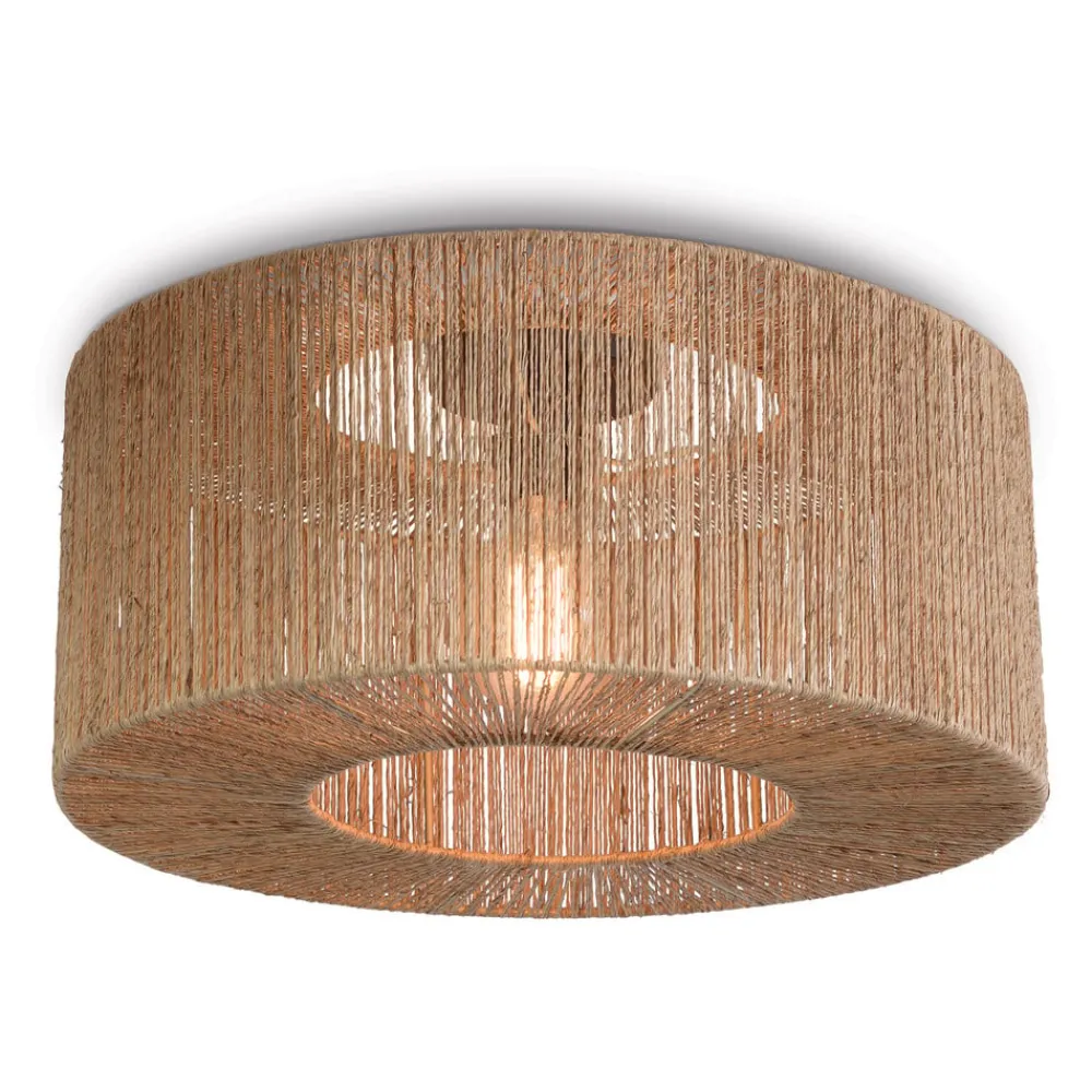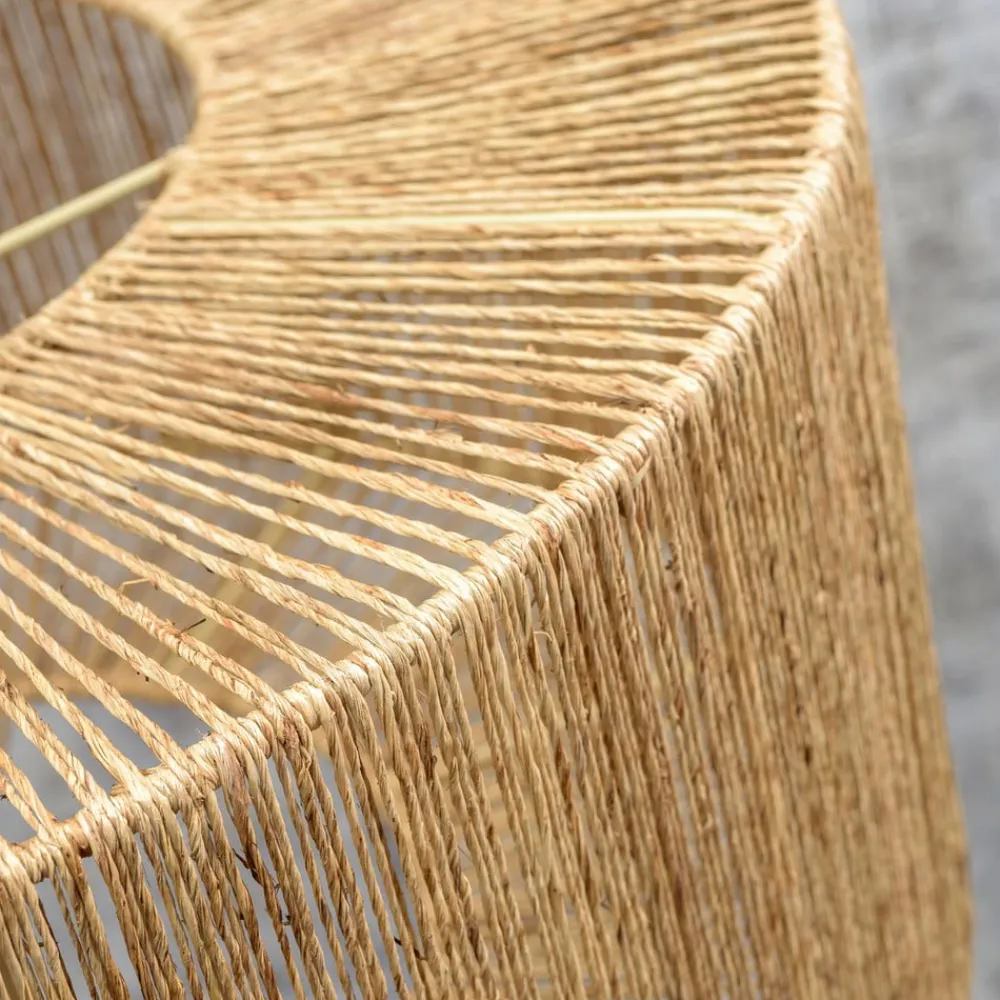 Rund loftslampe Iguazu lavet af jute Iguazu er opkaldt efter vandfaldene på grænsen mellem Brasilien og Argentina, de er de største vandfald i Sydamerika og et populært udflugtsmål. Når vandet strømmer nedad, gør de fine linjer i den runde paraply det også. Deres parallelle placering og den tætmaskede udførelse får dem til at ligne vandløb, der giver et kig ind i interiøret gennem fine huller. Lyset trænger ubesværet ind i rummet og skaber stemningsfulde lysbilleder. Den øverste åbning skaber et blødt, indirekte lys, mens den nederste oplyser rummet direkte. Loftslampen er lavet af den populære naturfiber jute, som er kendetegnet ved sine særlige egenskaber. Udover sin robusthed anses jute for at være meget strækbart og rivefast, men bæredygtige aspekter bør også fremhæves. Det vigtigste dyrkningsområde er frugtbar alluvial jord, som gør, at den krævende juteplante ikke behøver at blive gødet. Det er en stor fordel for miljøet og landmændene sammenlignet med intensiv bomuldsdyrkning. Det er aspekter, der passer til den grundlæggende idé hos det hollandske mærke Good & Mojo, som med sin kollektion ønsker at skabe bæredygtige lamper, der samtidig gør godt.