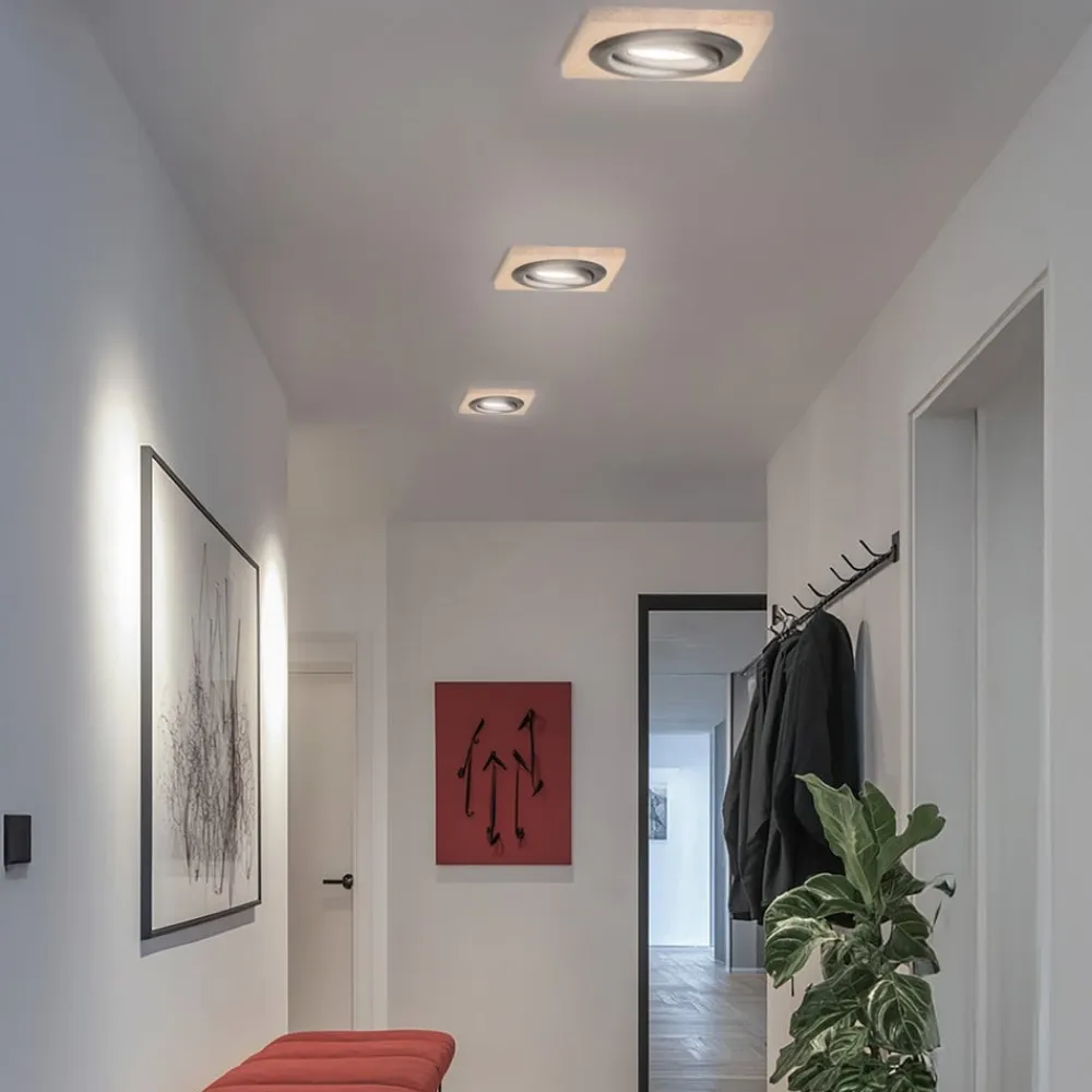 Kantet forsænket loftlampe Tobby i egetræ med drejelig GU10-fatning – i sæt med 3 stk.