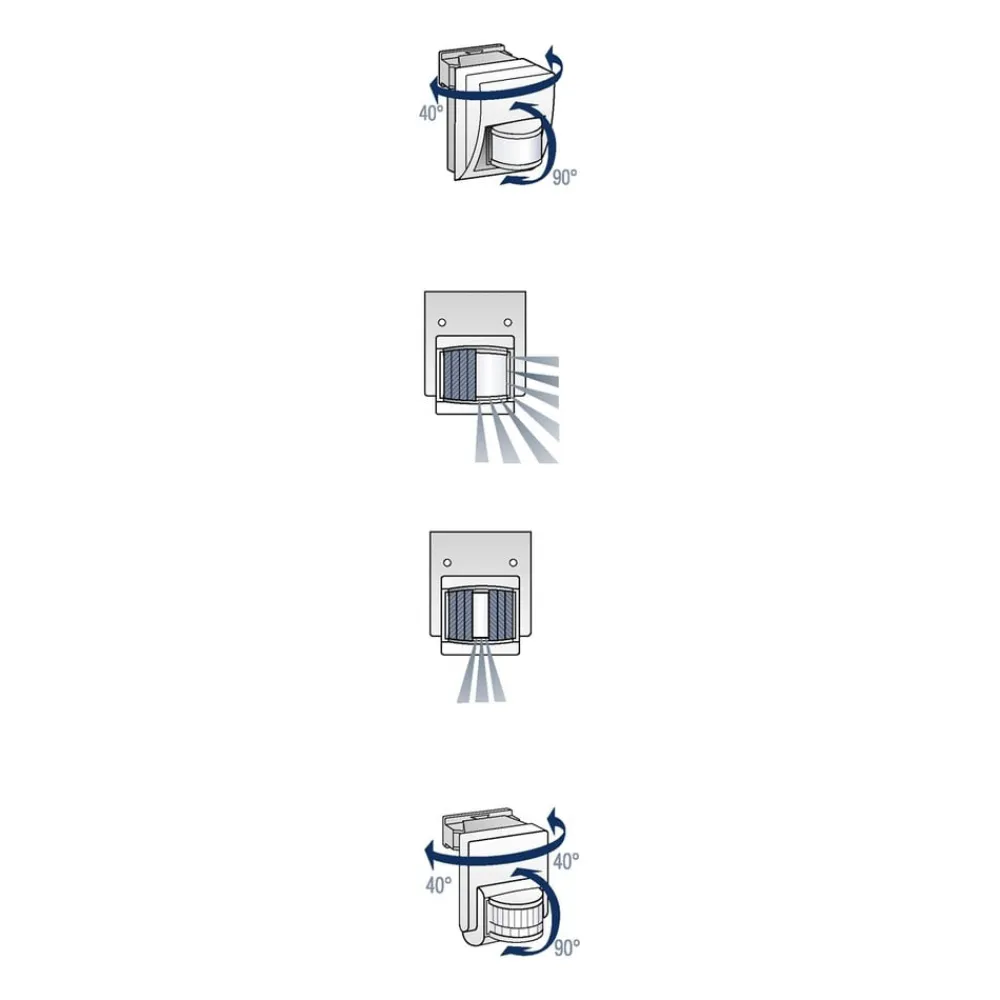 – Detektionsvinkel: 160° med 40° åbningsvinkel