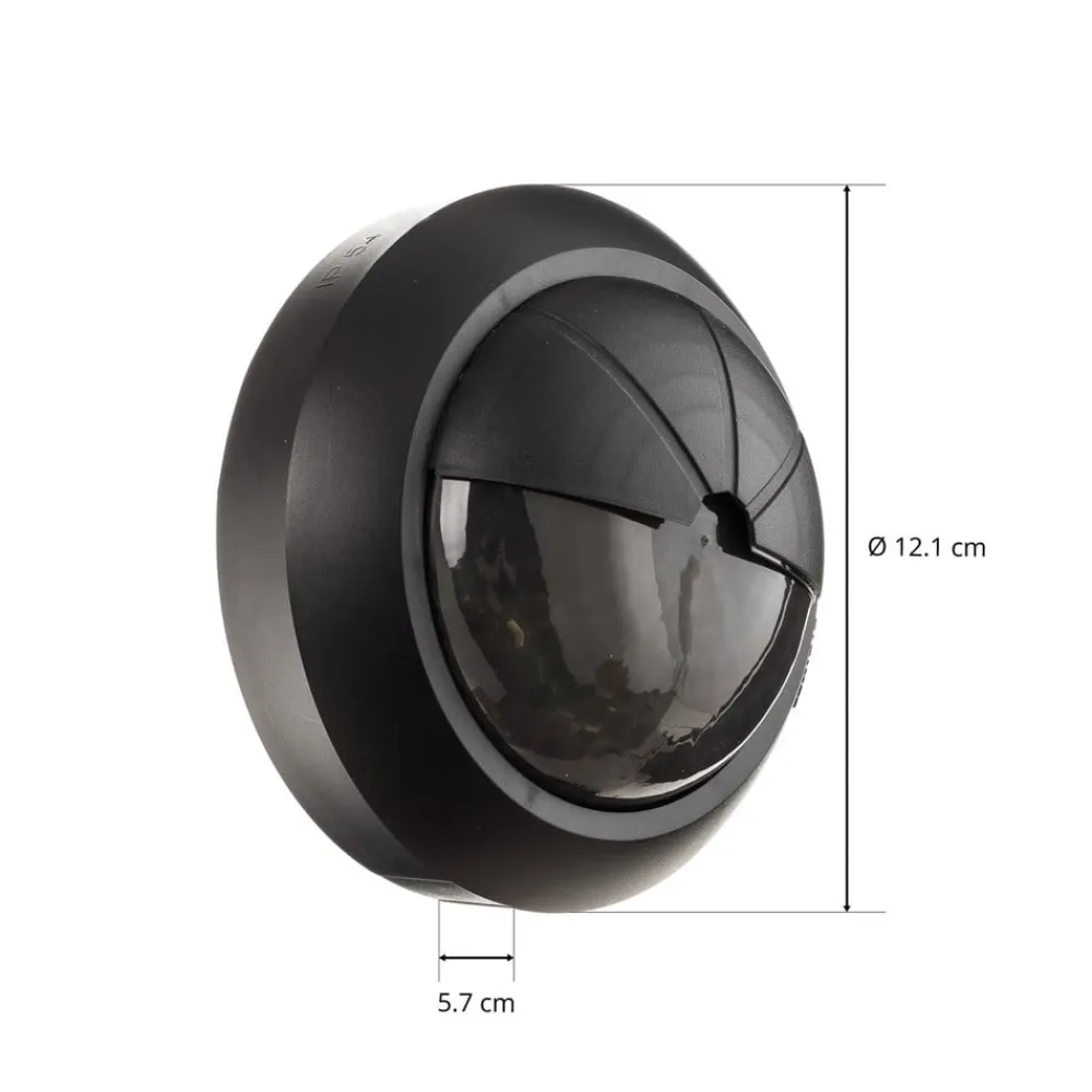 Denne bevægelsesdetektor er ideel til styring af belysning udendørs. Den kan nemt monteres under baldakiner eller verandaer, hvor den giver større sikkerhed i mørket. Den scorer med en detektionsvinkel på 360°. Belysningstiden for den pågældende lyskilde kan indstilles variabelt mellem 5 s og 15 min. Huset er sort hele vejen rundt, så detektoren passer diskret ind i det udvendige design.