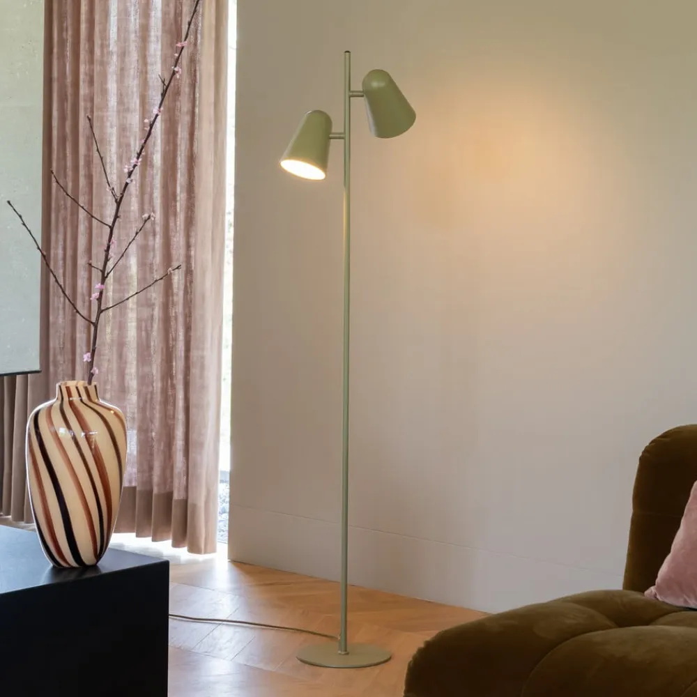 Gulvlampen Salamanca fra IT’S ABOUT ROMI overbeviser med sit moderne design og stilfulde olivengrønne farve. Den er fremstillet af højkvalitets jern og forener robusthed med et elegant udseende. Den 2 lyskilder-konstruktion sikrer optimal lysfordeling og skaber en behagelig atmosfære i ethvert rum.