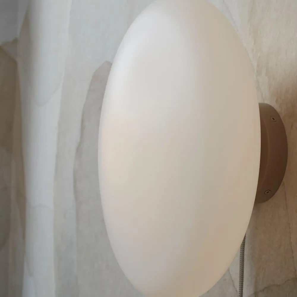 Sapporo væglampe med skærm i matteret glas Sapporo væglampen kombinerer stilfuldt design med alsidighed og skaber en særlig atmosfære i ethvert rum. Uanset om det er i spisestuen til en stemningsfuld middag, i gangen som en indbydende lyskilde, i soveværelset til afslappede aftentimer eller i stuen som accentbelysning – denne væglampe tilpasser sig harmonisk til mange forskellige boligområder. Særligt praktisk – Sapporo kan installeres som væg- eller loftlampe (installationsvejledning medfølger). Med sin enkle elegance og finish i høj kvalitet er Sapporo-væglampen et blikfang uden at være påtrængende. Bæredygtigheden understreges af den miljøbevidste emballage, hvilket gør væglampen til et ansvarligt valg til dit eget hjem. Særlige egenskaber ved It’s about RoMi: – brug af bæredygtige materialer siden 2010 – der plantes et træ for hver solgt væglampe – dette udligner CO2-udledningen – samarbejde med Eden Reforestation Projects siden 2019 – hver væglampe er inspireret af en by