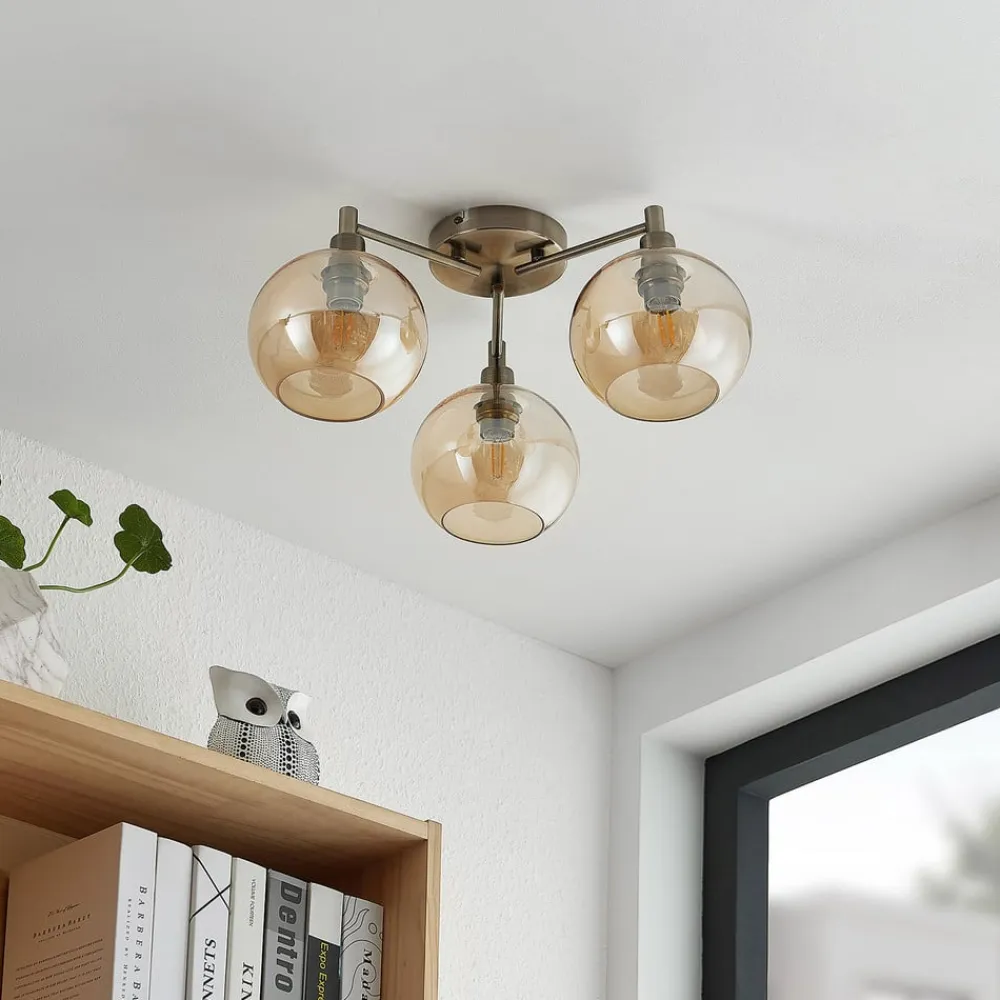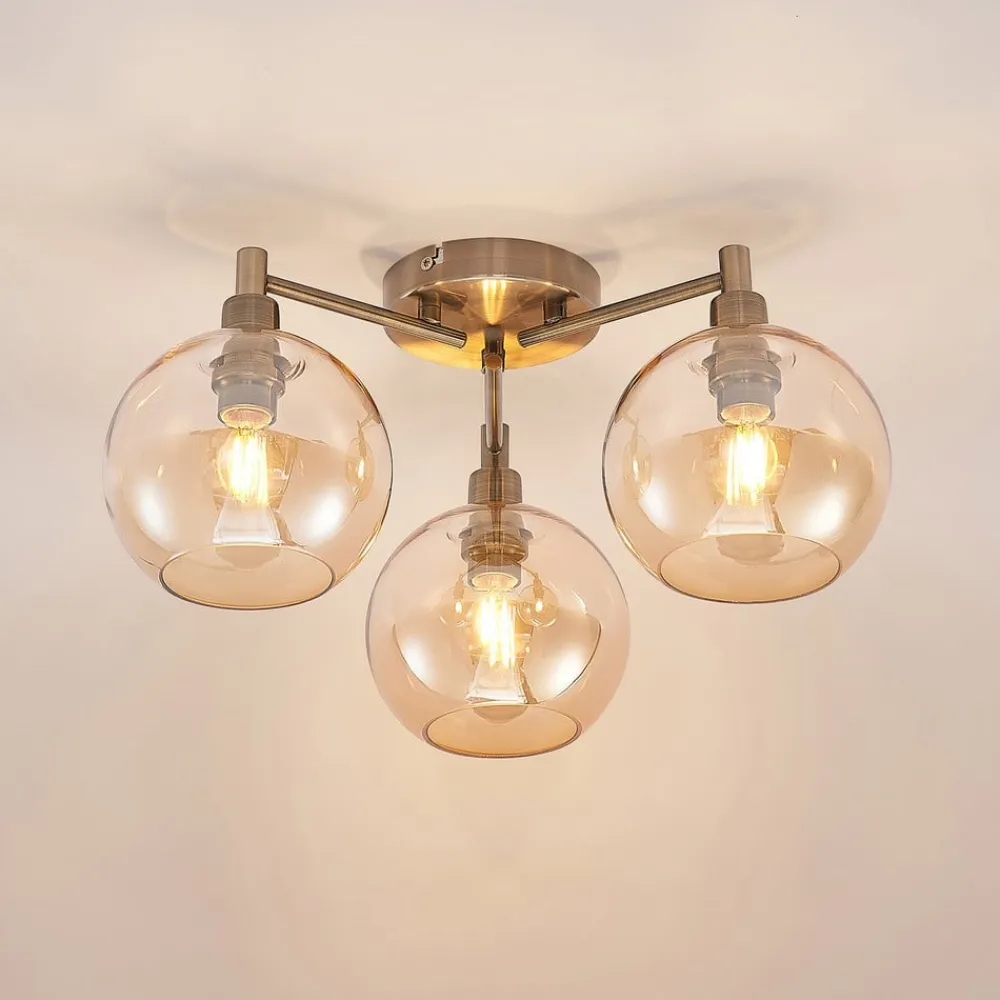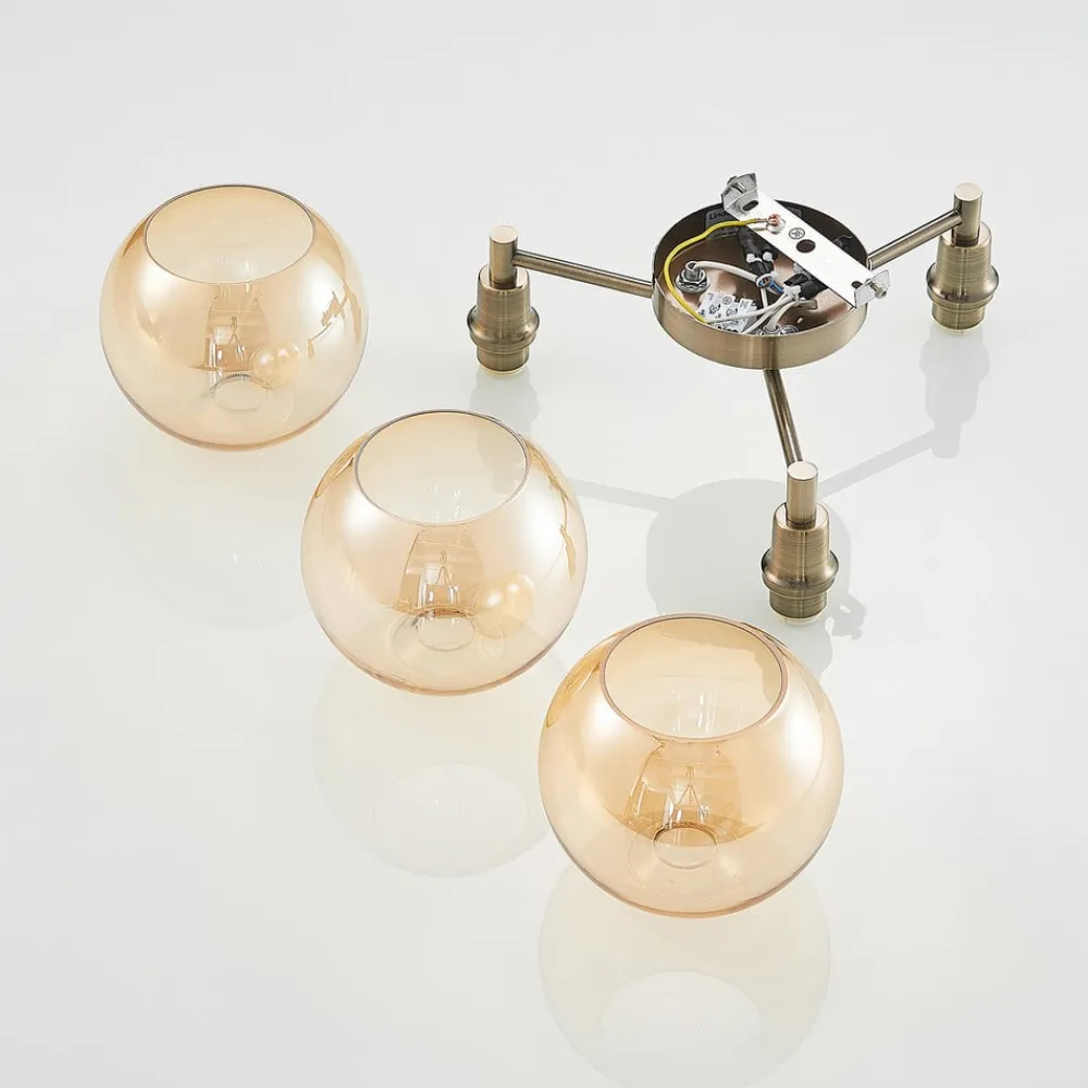 Stilfuld Jemissa loftslampe med tre ravfarvede glasskærme