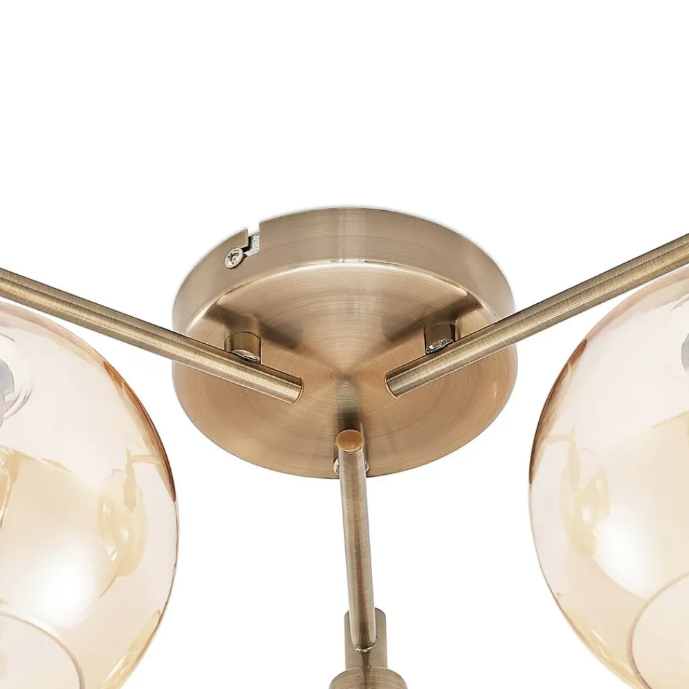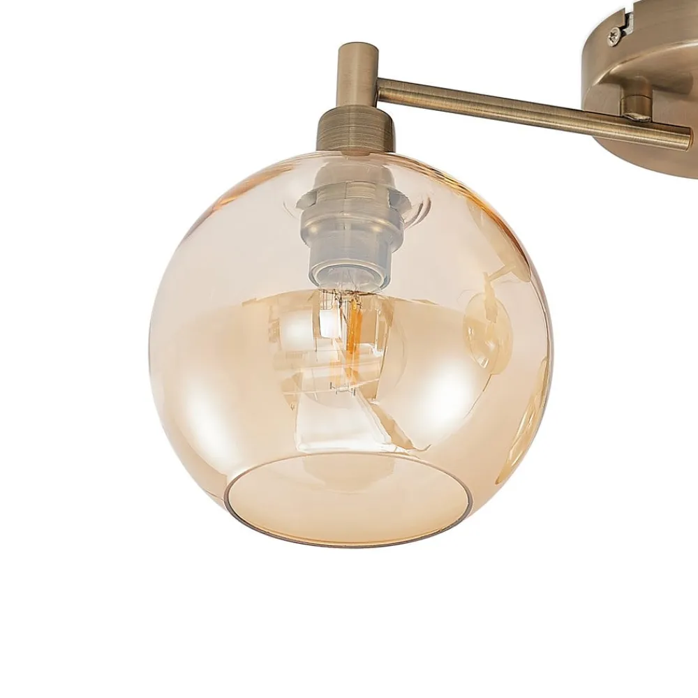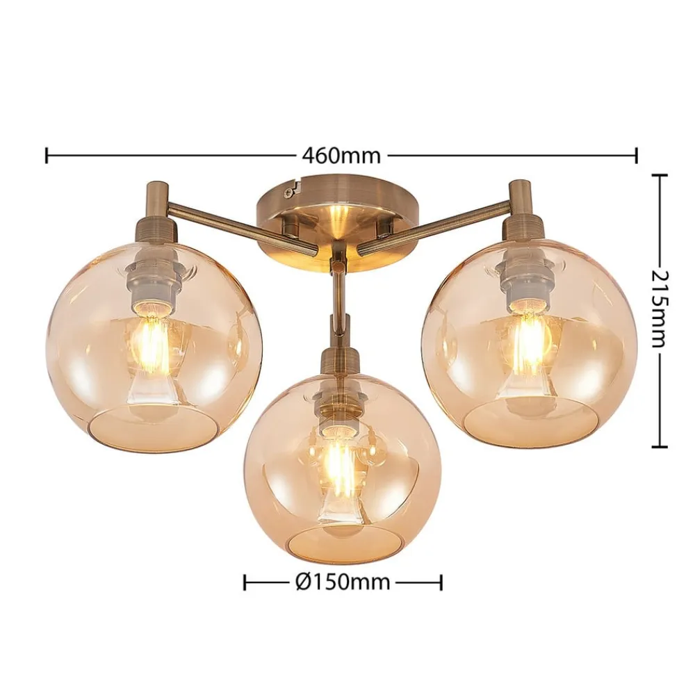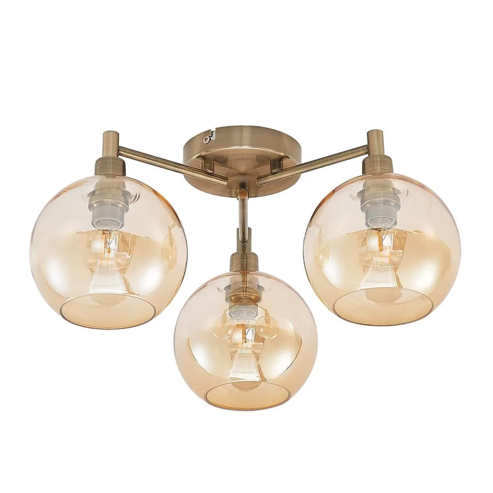 Stilfuld Jemissa loftslampe med tre ravfarvede glasskærme