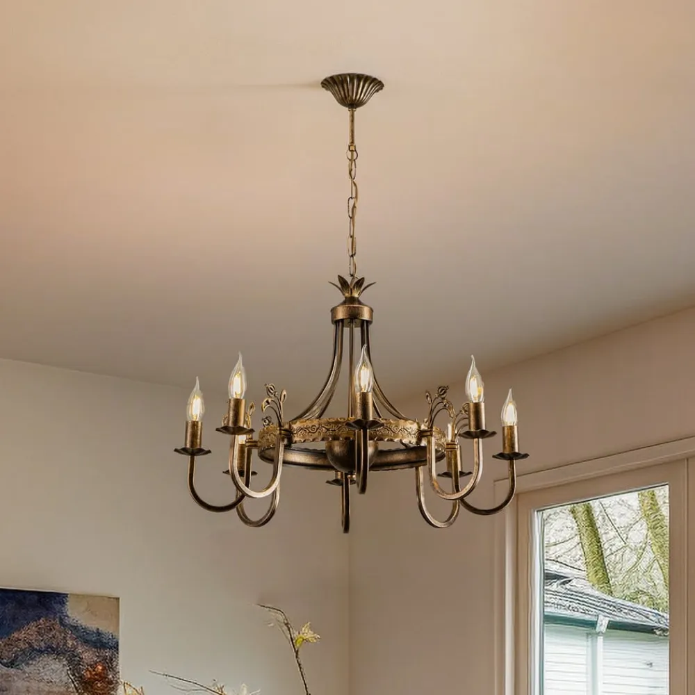 Lysekrone Castle i mørk patineret messinglook er indbegrebet af tidløs elegance og håndværksmæssig præcision. Med sin antikke stil passer den perfekt ind i klassiske stuer og spisestuer og giver ethvert rum en majestætisk atmosfære. Lysekrone har otte flammer, der sikrer en jævn og imponerende lysfordeling, der er velegnet til både hyggelige aftener og festlige lejligheder.