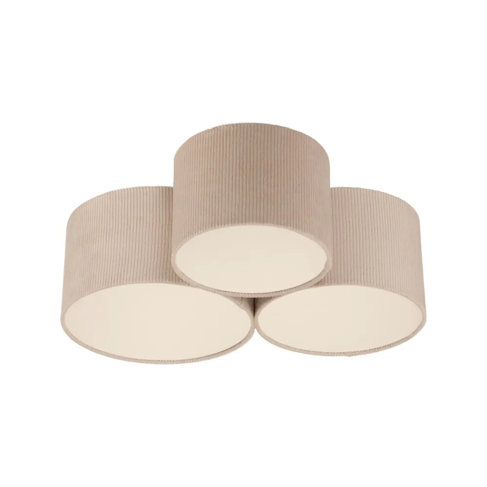 Green Duro loftlampe med tre sandfarvede tekstilskærme Tre cylindriske skærme er sat sammen i Green Duro loftlampen. Skærmene er lavet af bæredygtigt produceret stof. Takket være skærmenes hyggelige beige farve kan lampen integreres i ethvert interiør og installeres i stuen eller soveværelset eller endda i en stor gang. Hver skærm har en E27-fatning, der kan udstyres med en lyskilde på op til 10 W (LED-pære). Unge og dynamiske værdier kendetegner JUST LIGHT-mærket. – tidligere kendt som Leuchten Direkt.