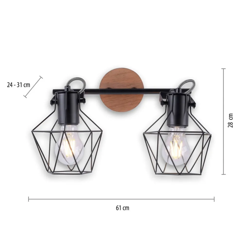 Loftslampe Jaro justerbar sort/træ 2-lys