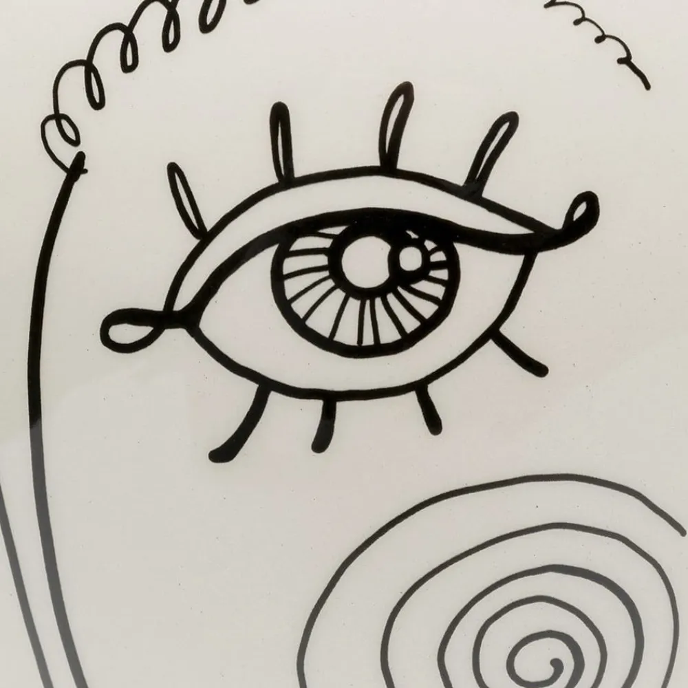 Favola Lady-vase af keramik, malet Favola Lady-vasen er en usædvanlig og stilfuld vase, der straks fanger øjet i ethvert rum. Vasen er fremstillet af keramik med en blank glasur og er robust og holdbar. Hver vase er unik takket være de håndmalede sorte konturer, der repræsenterer ansigtet og giver designet det helt særlige. Uanset om det er som dekorativt element på et sidebord, som borddekoration eller som en del af et blomsterarrangement – Favola Lady-vasen passer perfekt til andre designermøbler og -tilbehør og tilføjer et strejf af eksklusivitet til ethvert rum.