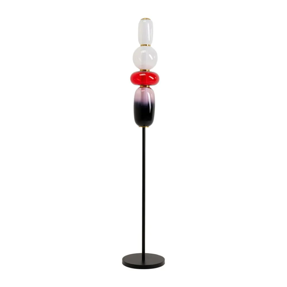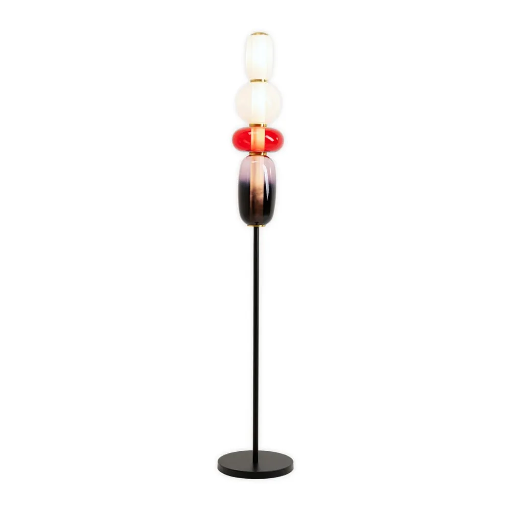 Gulvlampen Sugar forener et ekstraordinært design med en harmonisk kombination af glas, marmor og stål. Det flerfarvede design sætter stilfulde accenter og gør lampen til et blikfang i ethvert rum. Den er perfekt egnet til stuer og spisestuer og skaber en unik atmosfære, der både er inspirerende og æstetisk tiltalende.