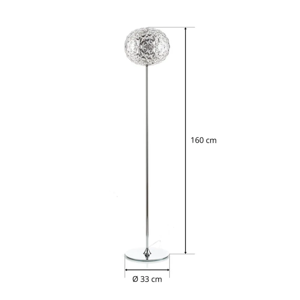 Den japanske produktdesigner Tokujin Yoshioka designede denne spektakulære standerlampe til den italienske fabrikant Kartell . Lampeskærmens form minder noget om en planet, der ikke er helt rund, men snarere elliptisk. Overfladens krystallinske udseende sikrer en magisk glitter og skinnende refleksioner. Det særlige ved her er materialet – i stedet for krystalglas anvendes her en særlig syntetisk harpiks, såkaldt termoplastisk teknopolymer, som på grund af sin forskellige materialetykkelse bryder lyset forskelligt i enhver vinkel. Således er udfordringen med at skabe en mousserende lyseffekt uden brug af krystaller fremragende opnået. Ved hjælp af den integrerede lysdæmper kan planetens lysstyrke reguleres efter ønske.