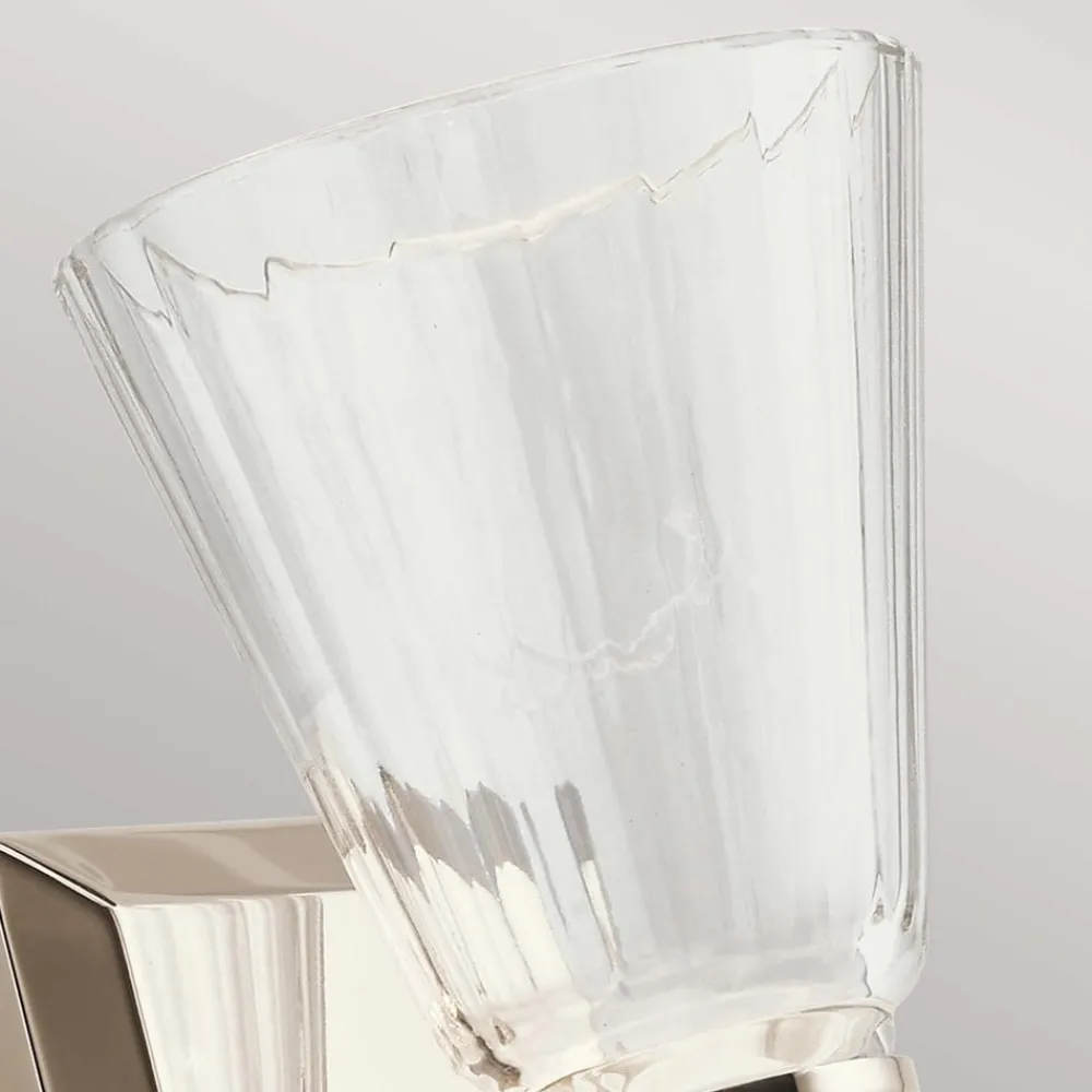 Kayva-væglampe med IP44-beskyttelse til badeværelser Inspireret af vintage glaskarafler fundet på parisiske loppemarkeder blev Kayva-serien skabt, som også er velegnet til brug på badeværelset takket være IP44-beskyttelsesgraden. Kayva-serien med indbygget LED-teknologi udstråler fransk elegance og kombinerer slanke linjer med klart, facetteret glas og en poleret nikkelfinish på stålrammen for en opdateret traditionel stil. Den integrerede LED-teknologi sikrer energieffektiv belysning – eksternt dæmpbar