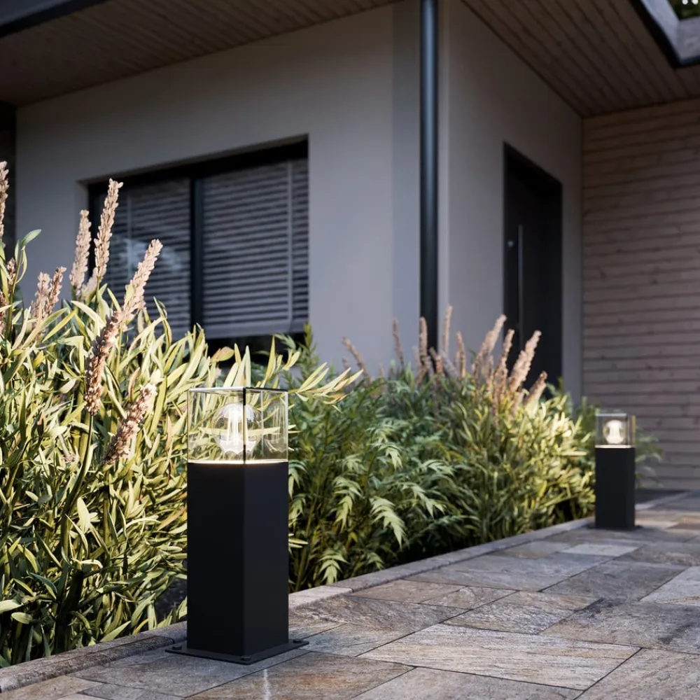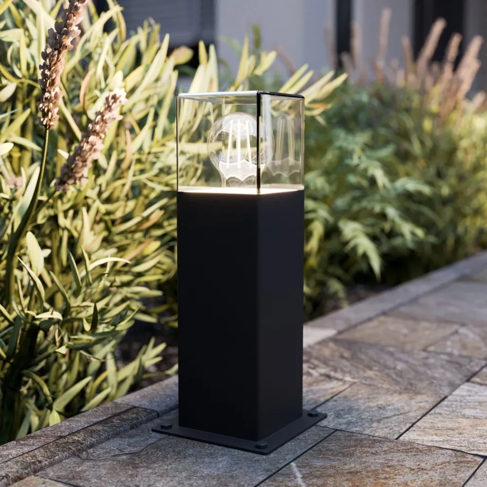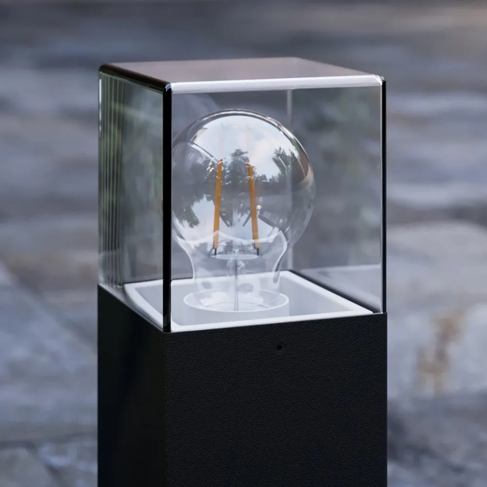 Pålideligt lys udendørs – Keke sokkellampe Det kantede design med det attraktive aluminiumshus i grafitgrå suppleres her med en røggrå plastskærm. Keke sokkellampen giver derfor ikke kun pålidelig belysning af havestier, indkørsler eller indgangspartier, men imponerer også med sin attraktive, moderne form. Takket være den robuste konstruktion og de anvendte materialer kan sokkellampen Keke bruges til mange forskellige udendørs formål.