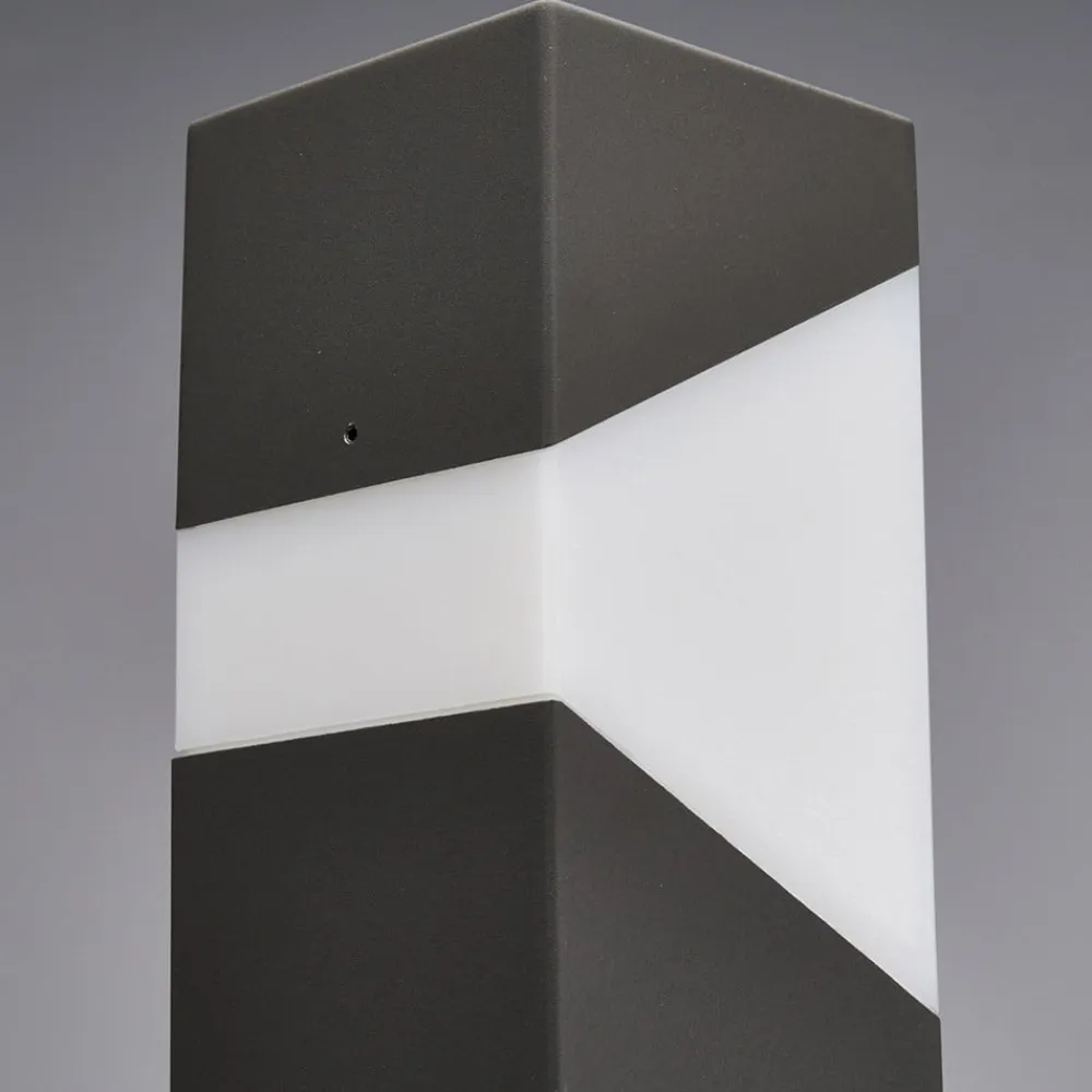 Kiran vejlampe med lige linje til moderne udendørsbelysning Helt kantet i formen passer Kiran vejlampen smukt ind i omgivelserne i moderne bygningskomplekser. Med sin hvide plastskærm skaber den et smukt, blændfrit lys og viser vej for alle, der har brug for at finde vej udenfor, selv i mørke. Plastindsatsen ser ud som et trapez i siden, hvilket giver den et mere individuelt udseende. En passende pære til E27-fatningen kan vælges blandt tilbehøret.