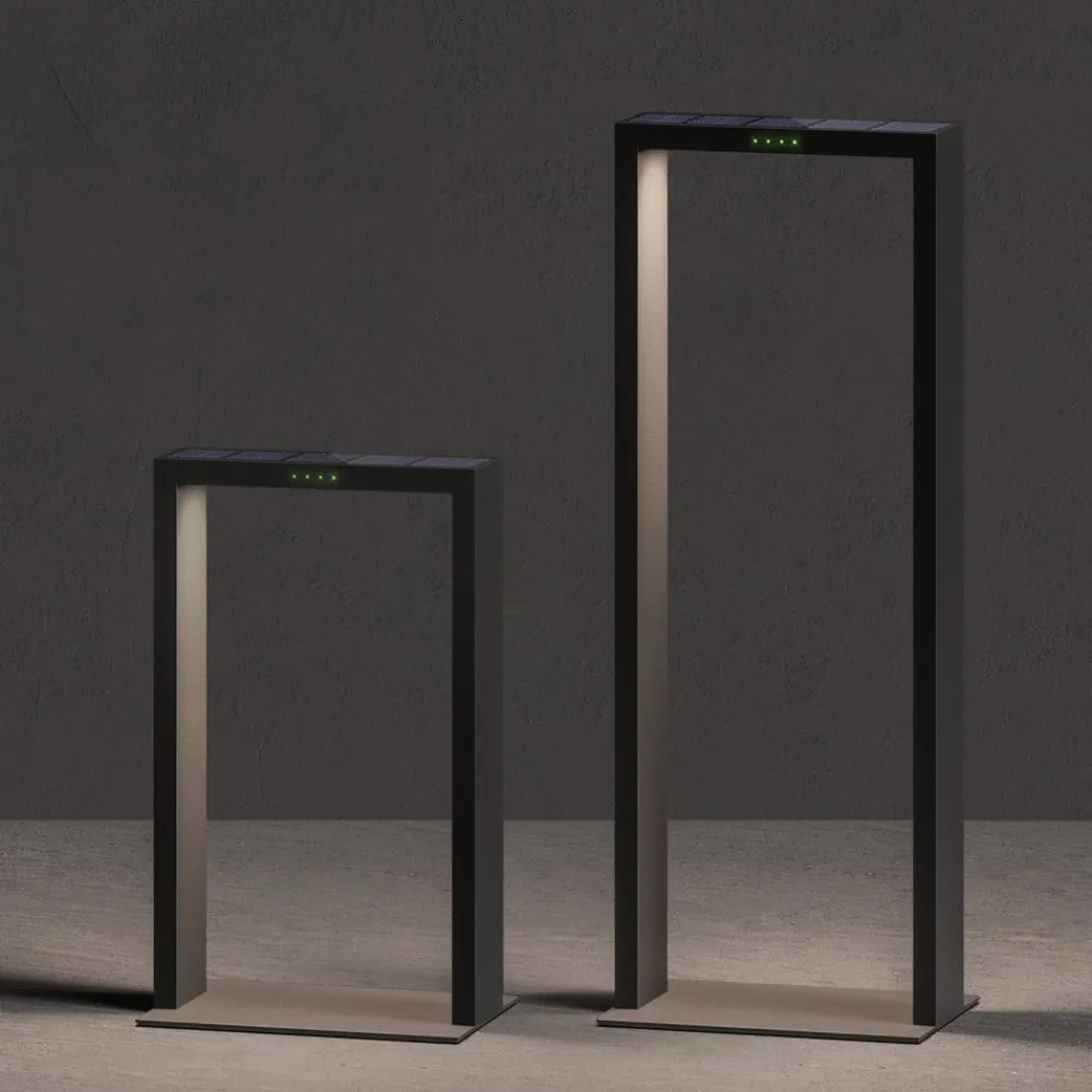 Nedadrettet AXIS MAXI LED-solcellelampe til terrasser og haver AXIS MAXI LED-solcellelampen giver varmhvid supplerings-, accent- og orienteringsbelysning til terrasser og grønne områder. Drift og tænding sker helt autonomt takket være solcellemodulet, det genopladelige batteri og skumringssensoren. Det minimalistiske design i en åben, rektangulær form af antracitfarvet aluminium passer perfekt ind i moderne miljøer – Dagslyssensor til automatisk tænding og slukning ved 50 lux – UV-bestandig pulverlakering – Skruer i rustfrit stål – Opladningstid: 10 – 12 timer – Driftstid: 19 – 21 timer – Udskifteligt batteri – Indikator for opladningsniveau – Solpanel: 2,5 W monokrystallinsk, dæksel af hærdet glas