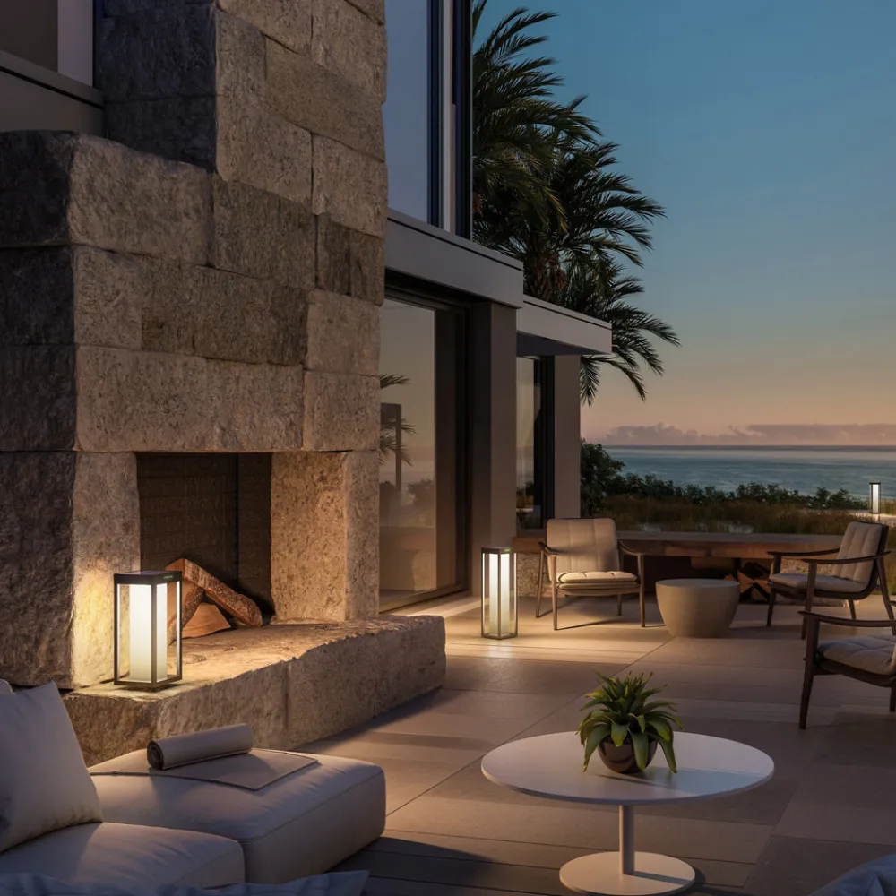 RADIA MINI MOON LED-solcellelampe i en moderne lanterneform til terrasser og haver RADIA MINI MOON LED-solcellelampen giver attraktive lysaccenter til dit udendørs område – hvad enten det er som terrasselampe eller havelampe. Den er lavet af antracit aluminium i en kantet lanterneform og udsender varmhvidt lys gennem en hvid diffusor. Takket være solpanelet, det genopladelige batteri og skumringssensoren er driften helt autonom – Dagslyssensor til automatisk tænding og slukning ved 50 lux – UV-bestandig pulverlakering – Skruer i rustfrit stål – Opladningstid: 6 – 8 timer – Driftstid: 16 – 18 timer – Udskifteligt genopladeligt batteri – Indikator for opladningsniveau – Solpanel: 2,5 W monokrystallinsk, dæksel af hærdet glas