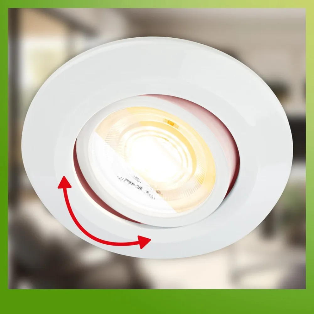 Fremstillet af genbrugsplast: Klira indbygningslampe i sæt med 3 stk. med justerbar lysfarve Oplev alsidigheden i indbygningslampen, som med sin drejefunktion og CCT-funktion skaber stemningsfulde accenter i opholdsrum. Den integrerede LED-lyskilde giver ikke kun en energieffektiv belysningsløsning, men også mulighed for at justere lysfarven individuelt (2.500 K, 3.000 K, 4.000 K). Uanset om det er i stuen, spisestuen, gangen eller soveværelset – dette moderne armatur i et sæt på 3 passer problemfrit ind i enhver atmosfære og gør det muligt at målrette lyset. Med sin bæredygtige emballage bidrager dette belysningssæt til et bevidst forbrug.
