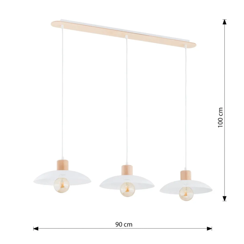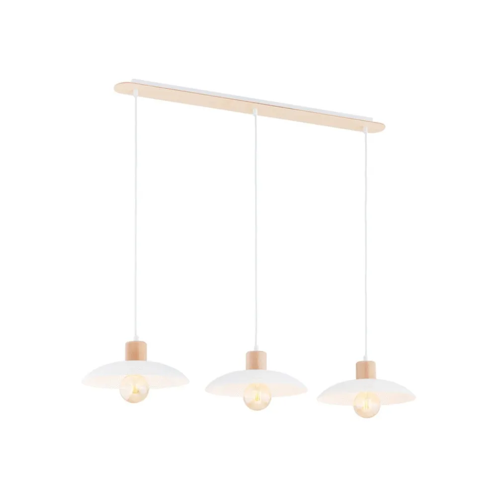 Kobe hængelampe, 3 lyskilder, stål, træ, hvid