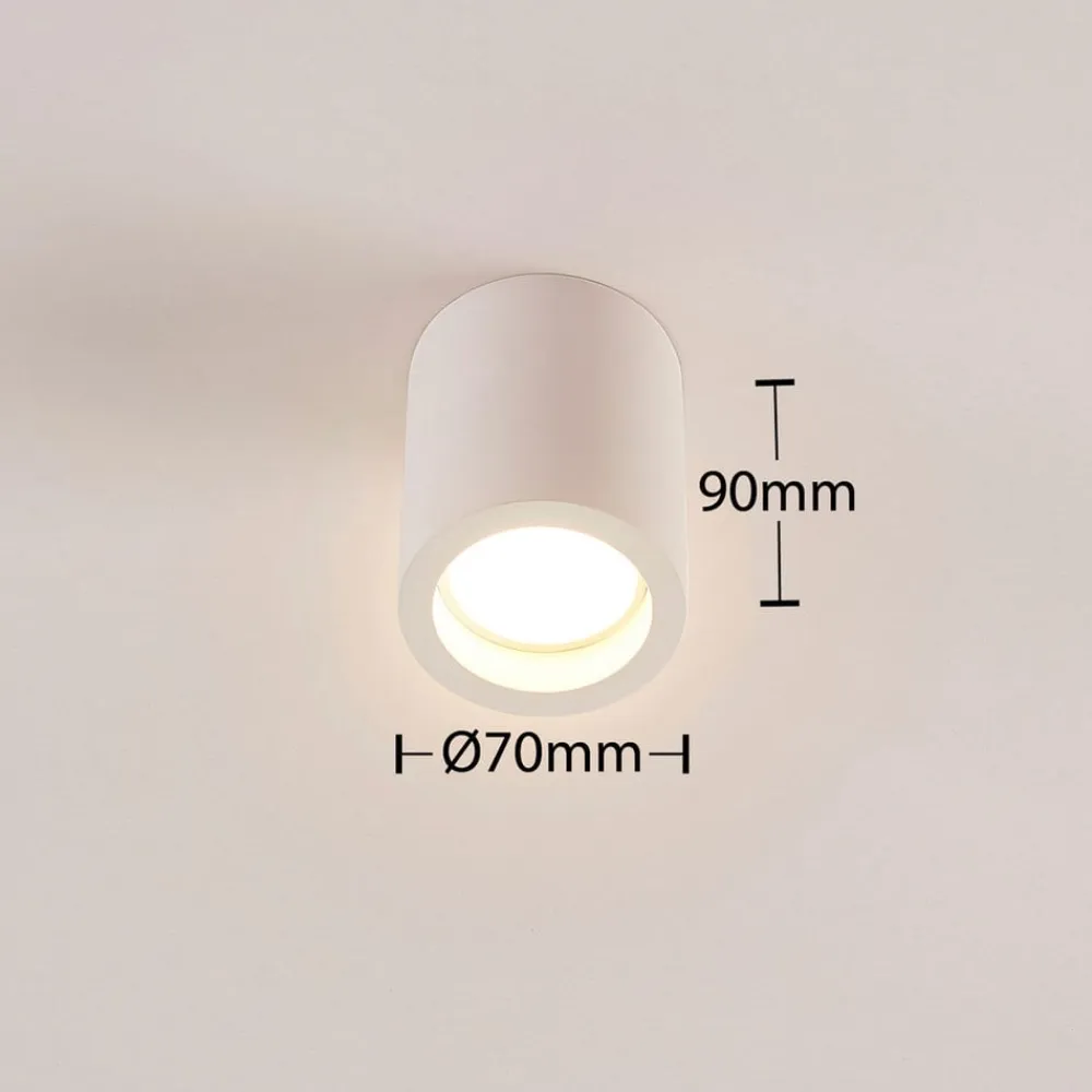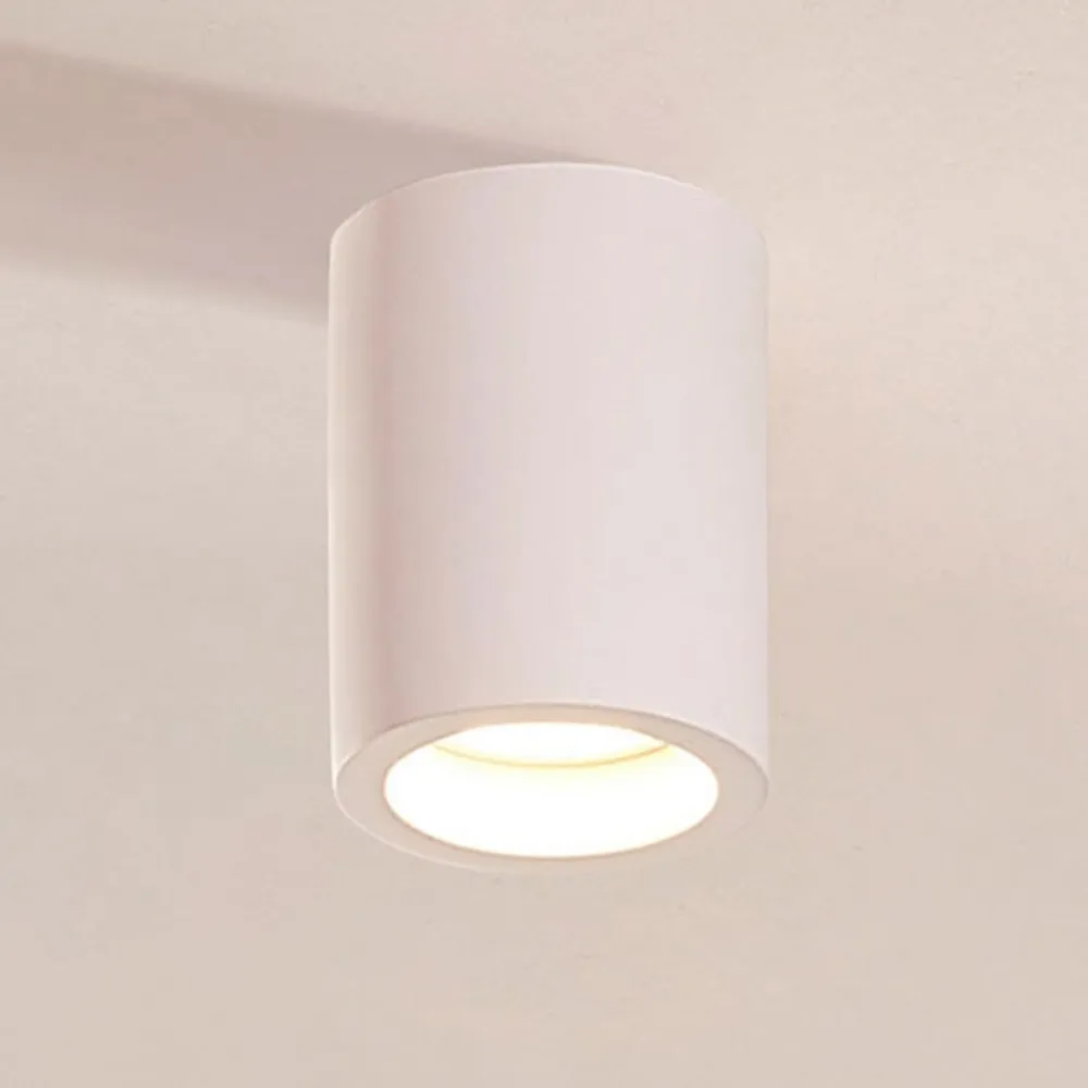 Easydim downlight Annelies af gips Annelies har et relativt kompakt design og kan derfor bruges på mange forskellige måder. Lampekroppen har en enkel cylindrisk form, og lyset er rettet nedad. Da Annelies er lavet af gips, kan downlighten males eller endda farves. Den kan udstyres med passende pærer og er den perfekte ledsager til indendørs brug.