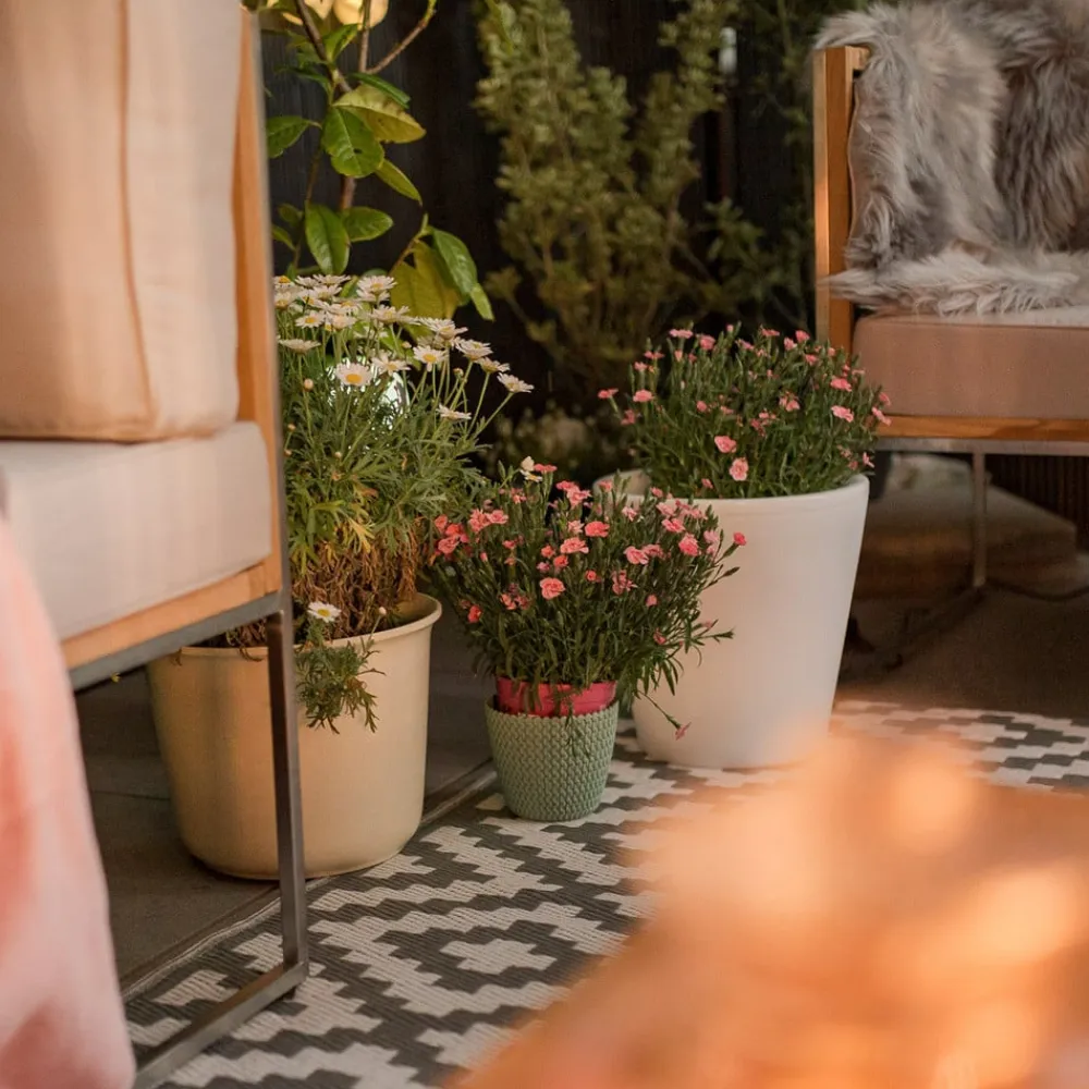 LED-oplyst Assisi-blomsterkrukke Et absolut highlight i indgangspartiet eller på terrassen er denne Assisi-blomsterkrukke, der er oplyst med den nyeste LED-teknologi. Krukken har et integreret drænrør og kan derfor beplantes enkeltvis, uden at der opstår vandansamlinger. Krukken er oplyst af 15 LED’er i en behagelig varm hvid lysfarve.