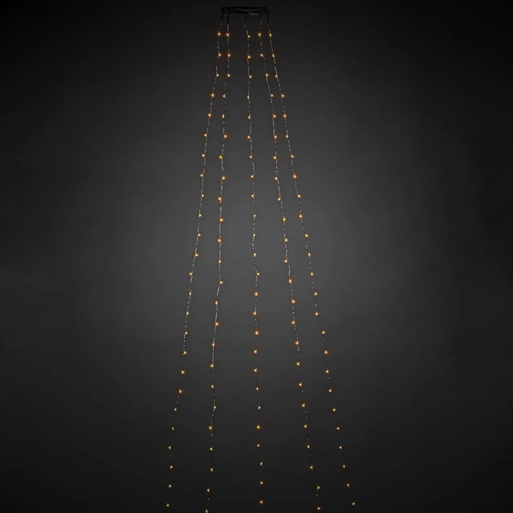Micro LED-trækant med 5 tråde – kan nemt styres via app Ravfarvede LED-dråber er fordelt på i alt fem tråde i LED-trækanten og skaber en festlig stemning med deres lys. At pynte juletræet med denne LED-trækant er ikke bare meget nemt, men også meget praktisk: Der er mange valgmuligheder takket være styringen med den gratis Konstsmide-app, der kan downloades, og som fungerer med både iOS- og Android-mobiltelefoner og styres via Bluetooth. Op til 8 (iOS) eller 4 (Android) lyskæder kan styres samtidigt. App-funktioner: – 8 forskellige tilstande kan vælges: inklusive kørelys, blinkende eller blinkende lys, en kombination af alle typer lys eller parkeringslys – Dæmpningsfunktion: Indstil blot den ønskede lysstyrke for lyskæderne eller lyskæderne selv – Timer: Individuel indstilling af lyskædernes varighed er mulig hver dag – Musik: Download blot og afspil dine yndlingssange. Bemærk: Selve appen indeholder ikke musik – Flash: Du kan vælge ensartet eller variabelt lys fra lyskæderne.
