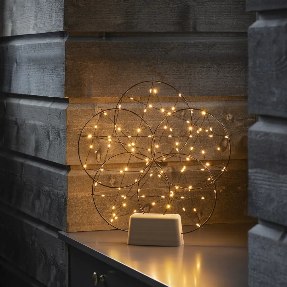5 små ringe LED-dekorationslampe, med træfod
