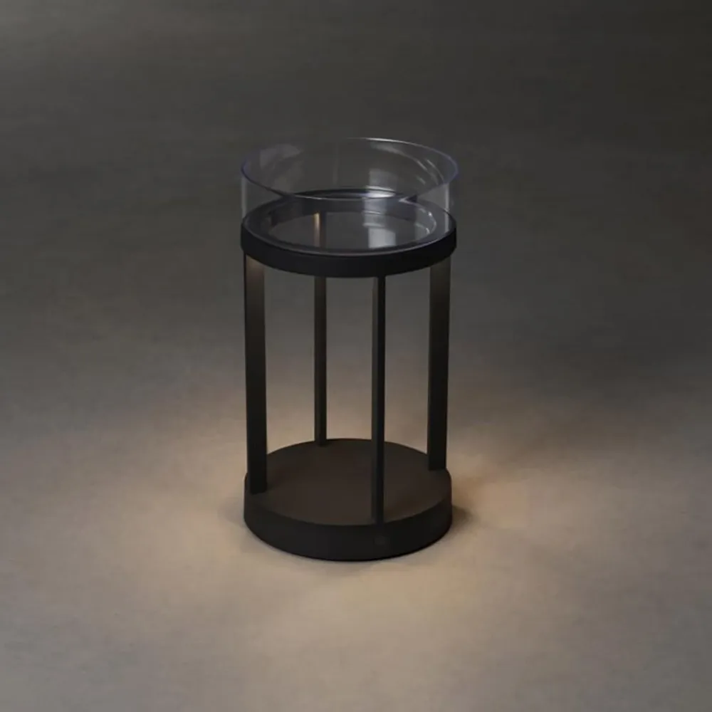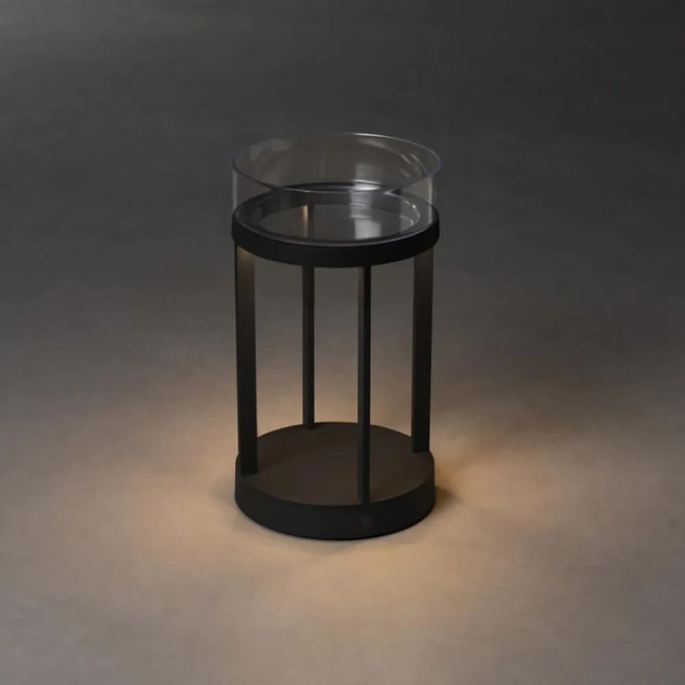 LED-deco lampen Chieti overbeviser med sin moderne lanterneform og materialevalg af høj kvalitet. Desuden er den meget dekorativ på grund af sit særlige udseende, og de indbyggede funktioner gør den til en rigtig all-rounder. Det holdbare aluminium skaber det perfekte grundlag for udendørs brug, hvilket betyder, at armaturet kan modstå alle vejrforhold. Det integrerede genopladelige batteri gør det muligt at bruge lyset uden for stikkontakter, så det kan skabe en behagelig atmosfære når som helst og hvor som helst. Glasskål medfølger til opbevaring af redskaber eller til dekoration.