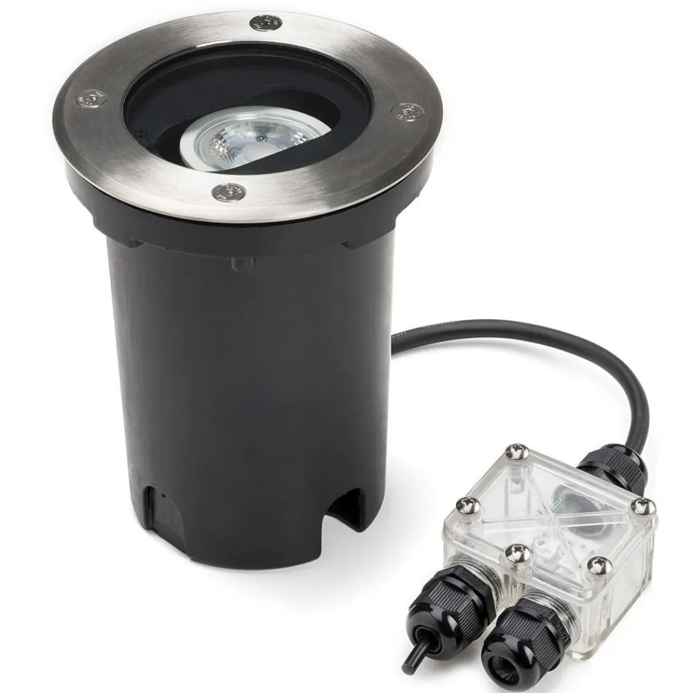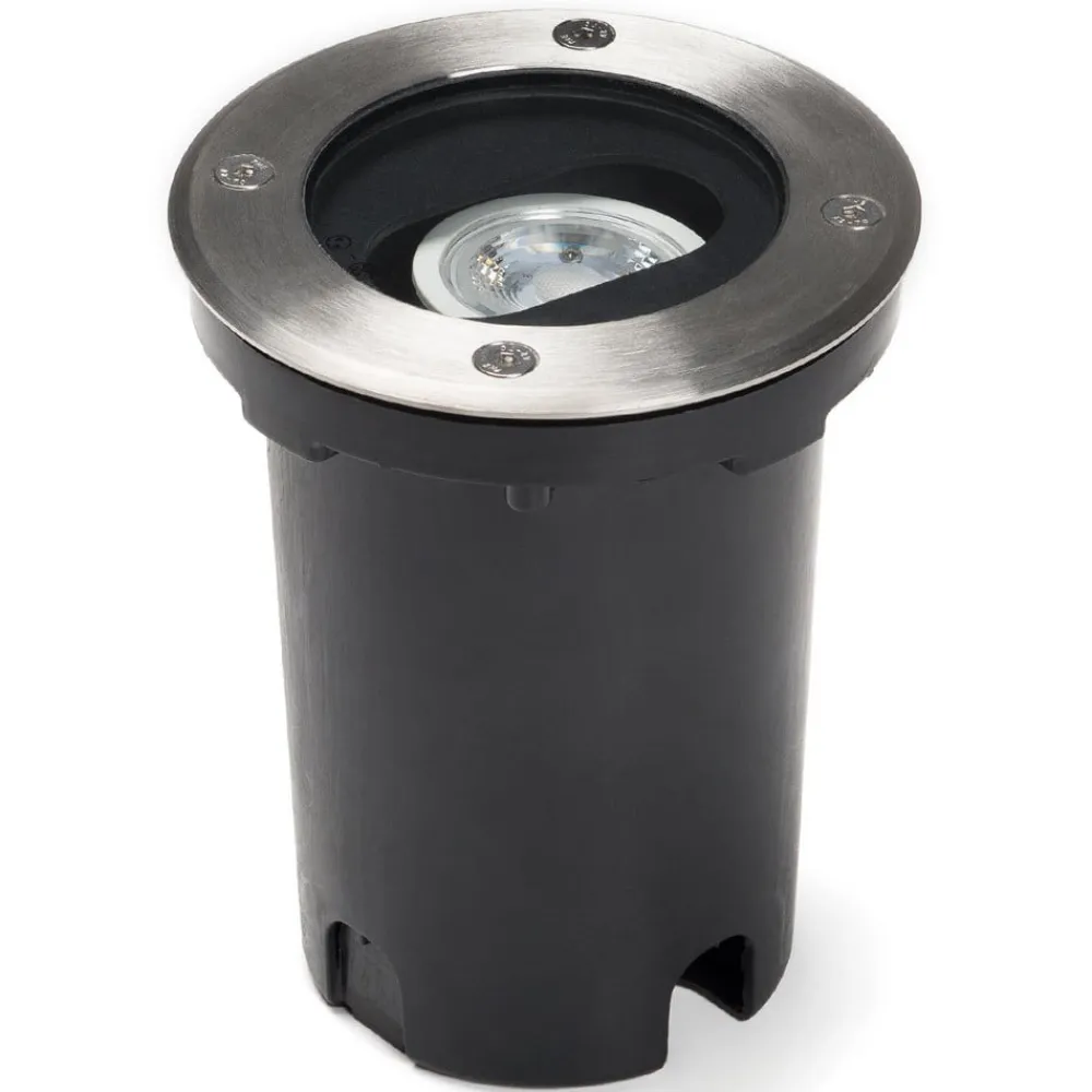 Den robuste Ground spot op til en belastning på 510 kg, hvilket gør den ideel til brug i indgangene eller gårdene i gårdspladsen. Den er indlejret i gulvet og udstyret med en passende GU10-lampe, som garanterer variabel belysning takket være en justerbar strålevinkel på 0-15 ° (for passende lamper se tilbehør).