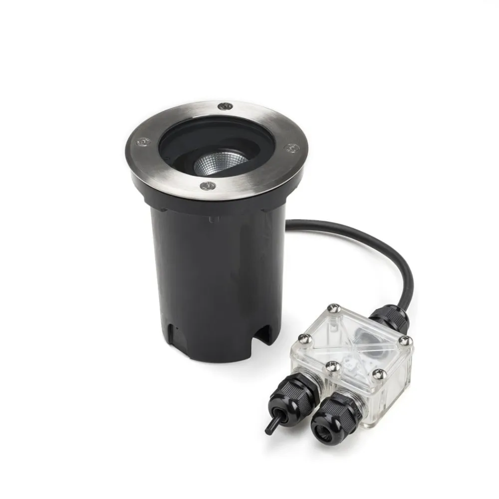 Ground Spot LED-indbygningsspot er ideel til belysning af indkørsler eller stier omkring huset, fordi den kan køres over med en belastning på op til 510 kg og giver en tydelig synlig stiafgrænsning om natten – især når den er monteret i grupper. Den indbyggede high-power LED udsender et behageligt varmt hvidt lys på ca. 3.000 Kelvin, hvis strålevinkel kan justeres fra 15° til 40°, hvis det ønskes.
